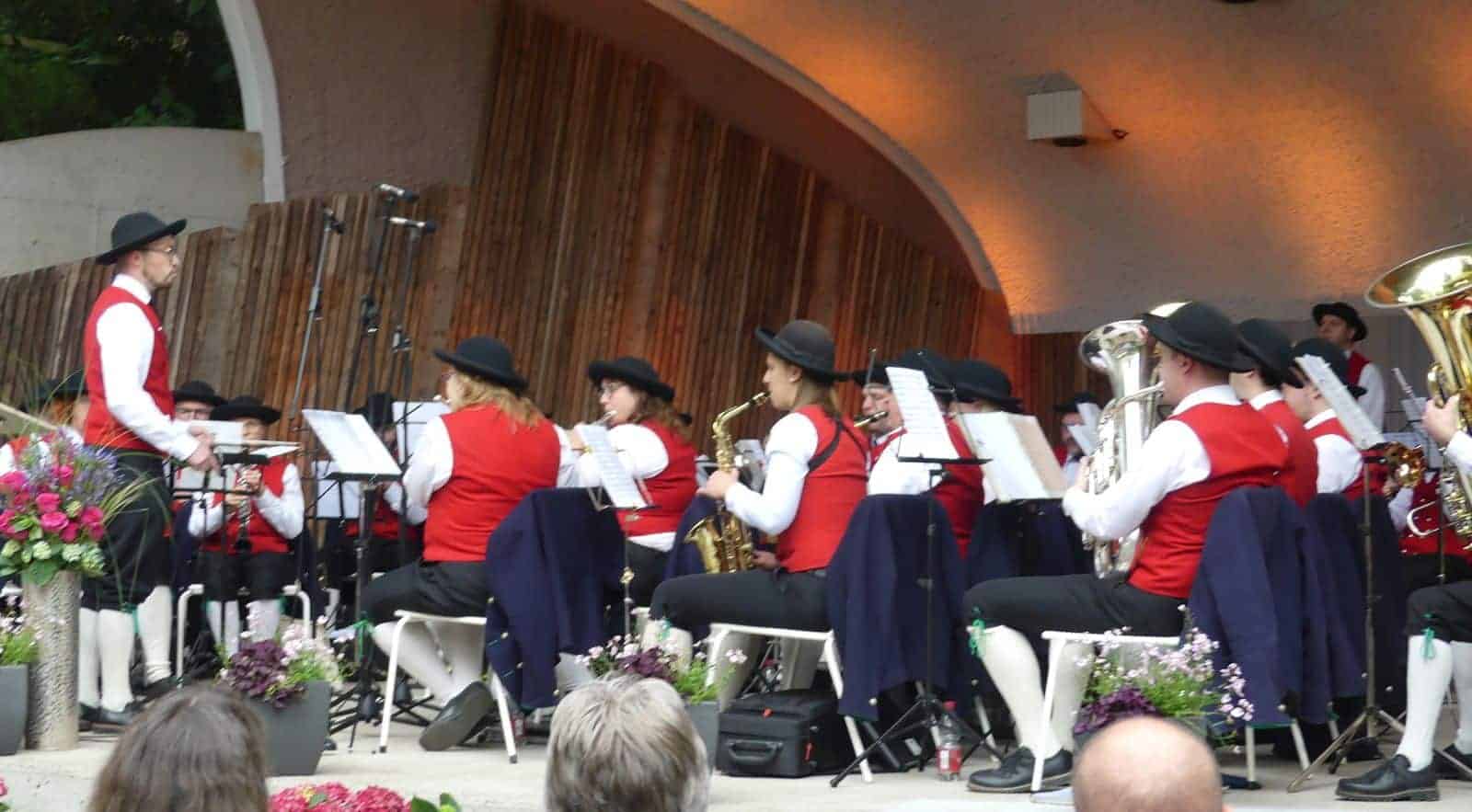 Die Musikerinnen und Musiker aus Tennenbronn servierten als Dessert ein Potpourri aus Kult-Hits der80er Jahre. Eingangs gab es unter der Leitung von Vizedirigent Niklas Broghammer als “Gruß aus der Küche“ den Marsch „Mein schönes Tennenbronn“.