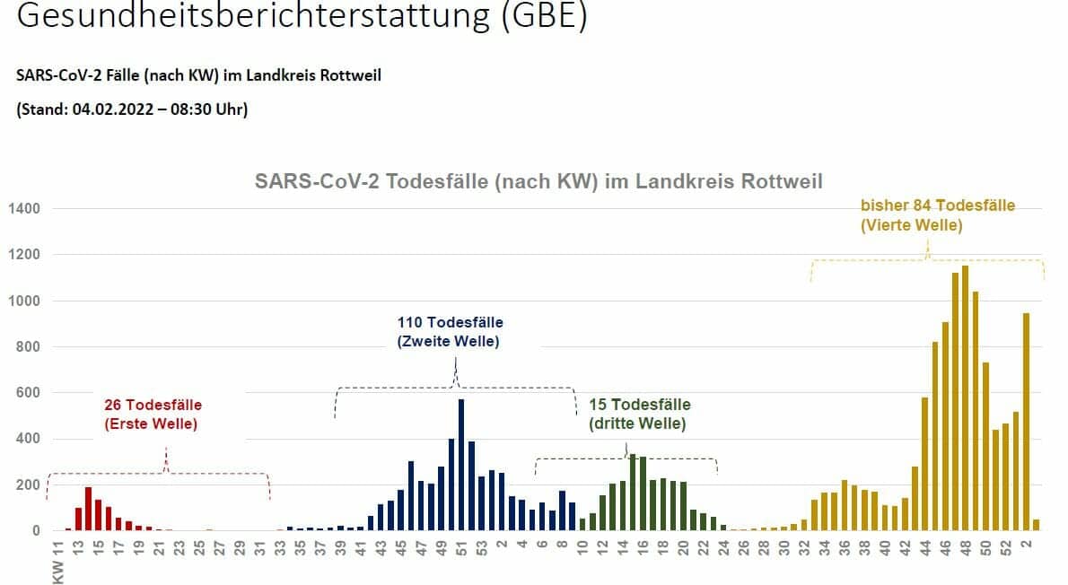 Besonders viele Todesfälle habe es in der zweiten Welle gegeben. Bei der vierten, der Omikronwelle hole man leider derzeit stark auf.