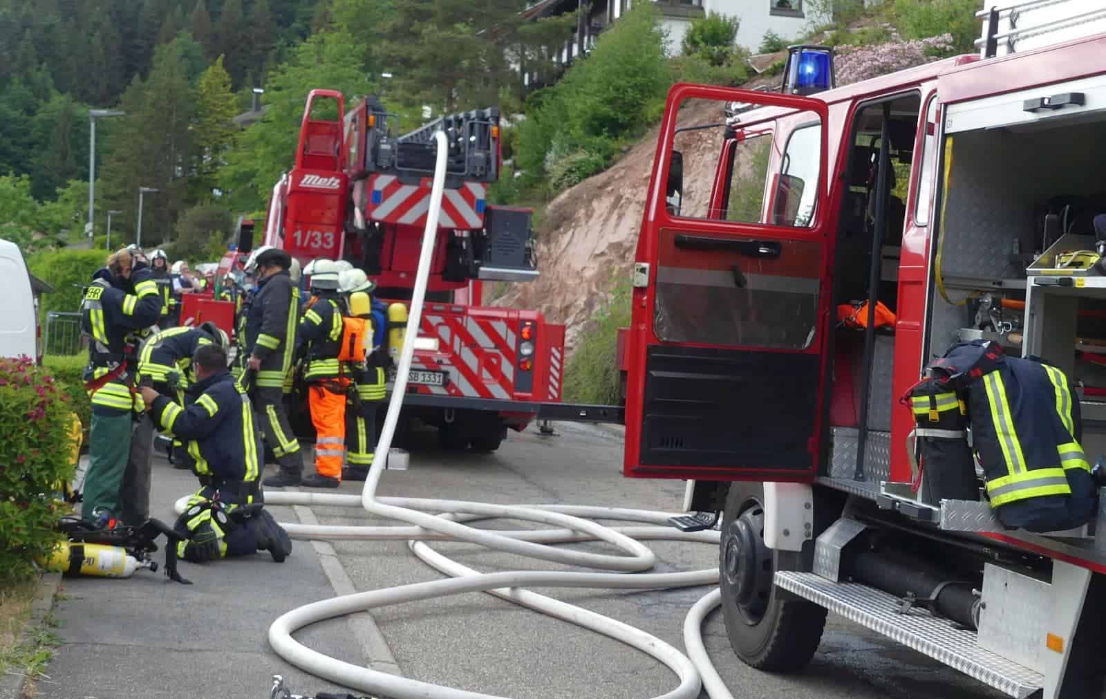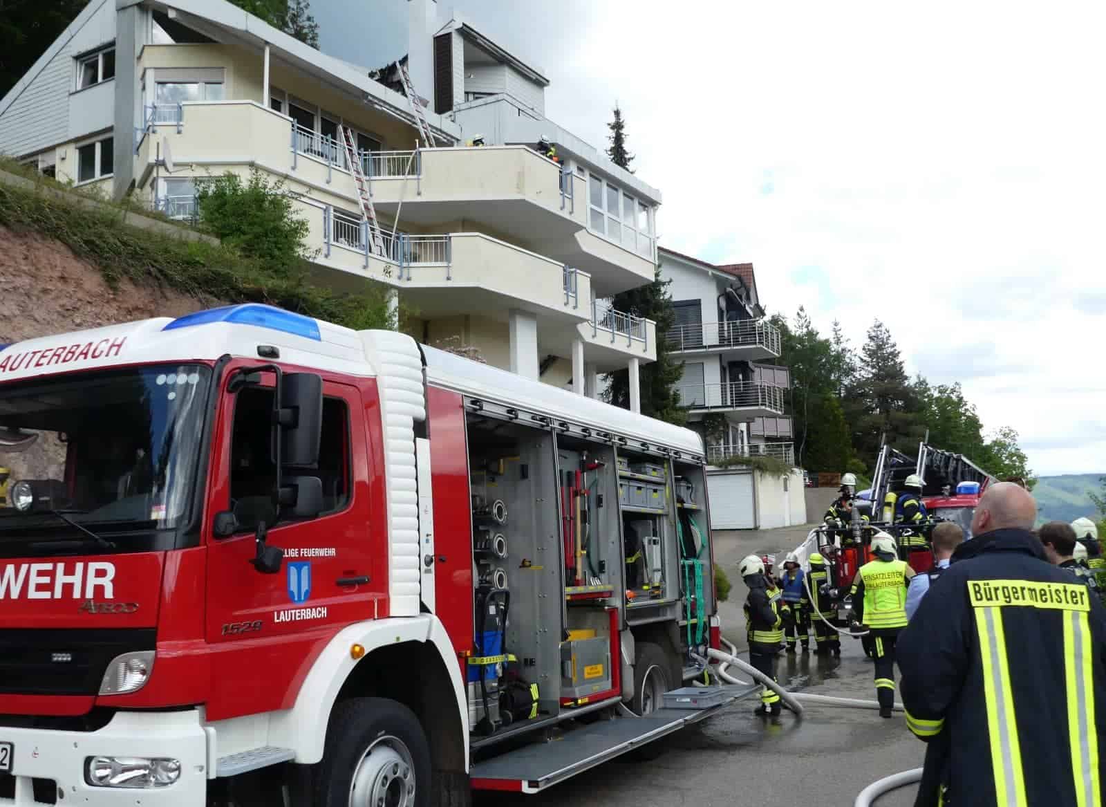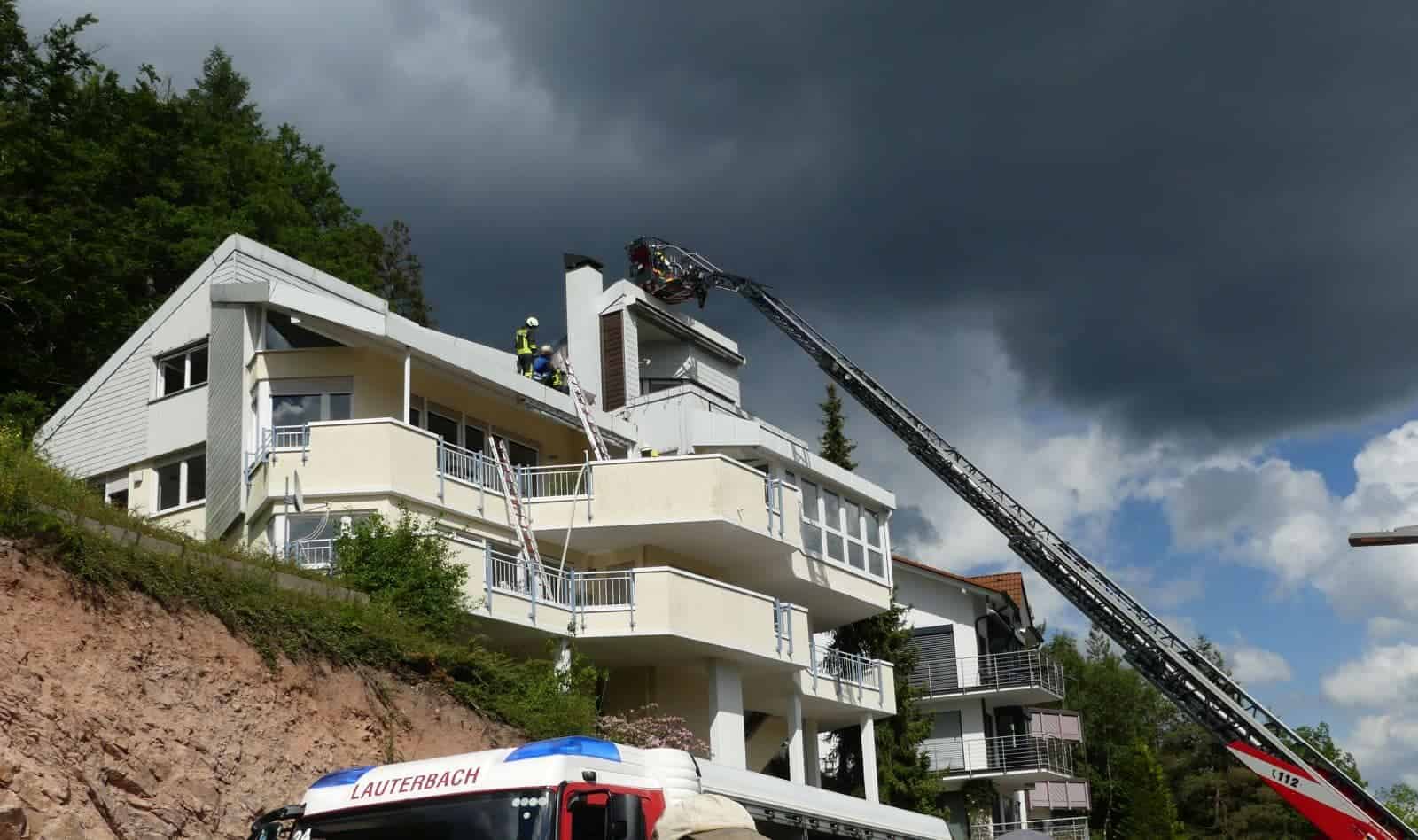 Der ursprünglich gemeldete Gebäudebrand hatte sich vor Ort als Kaminbrand herausgestellt. Allerdings hatten die Flammen vom Kamin bereits auf die Fassade übergegriffen. Die Feuerwehrleute haben nach dem eigentlichen Löschen der Flammen weiter nach Glutnestern unter der Fassade gesucht und dabei Teile der Fassade entfernt. Mit Hilfe der Drehleiter aus Schramberg gelangten sie an die betreffende Stelle.