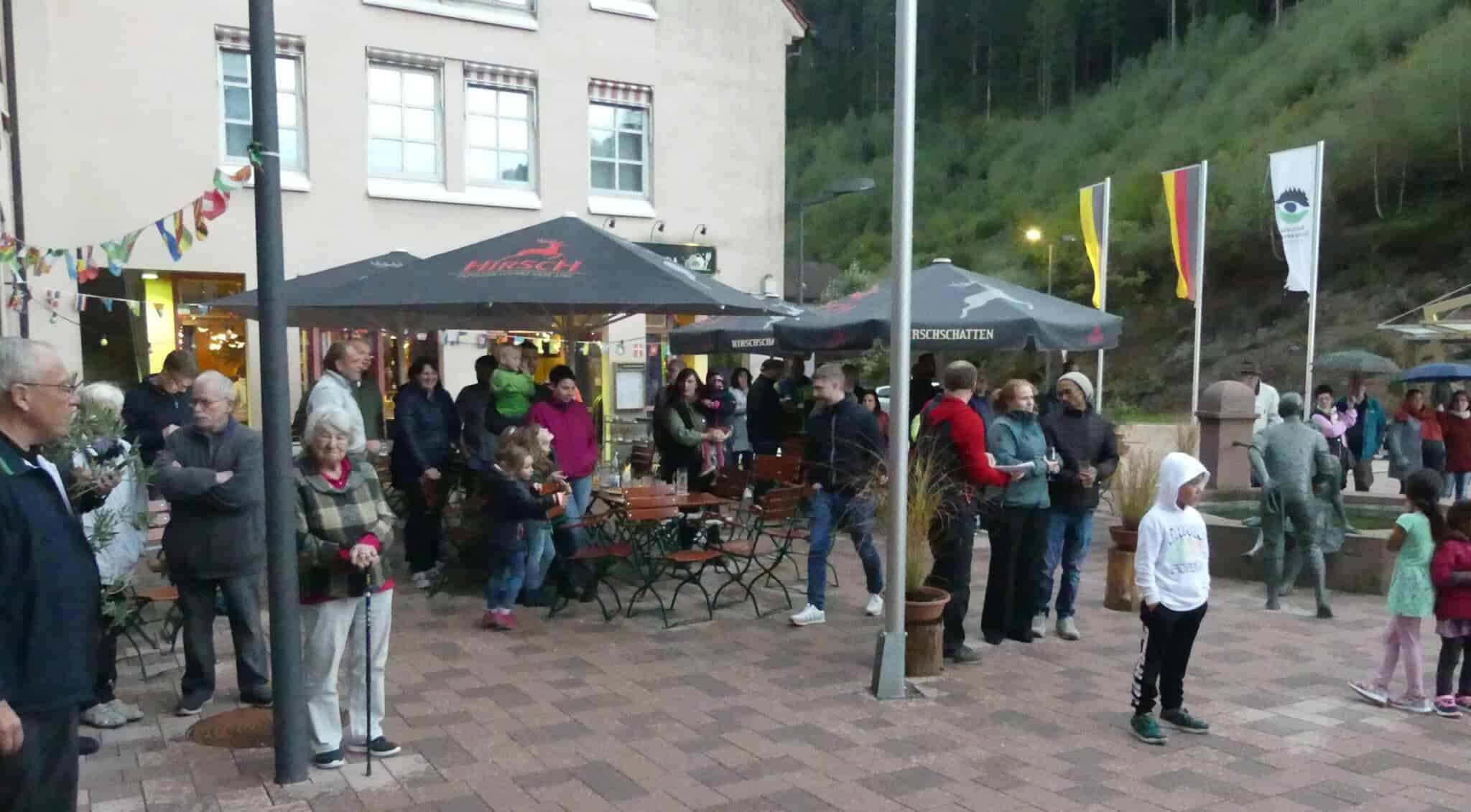Dann gab Swoboda das Wahlergebnis bekannt: Laut beklatscht von den etwa 100 Lauterbacherinnen und Lauterbachern, die ihren neuen Bürgermeister willkommen heißen wollten. Auch für Michael End und Sibylle Zerr, die sich bei den Sonnenschirmen des Aladin und Frieda vor dem Regen unter gestellt hatten, gab es freundlichen Applaus.