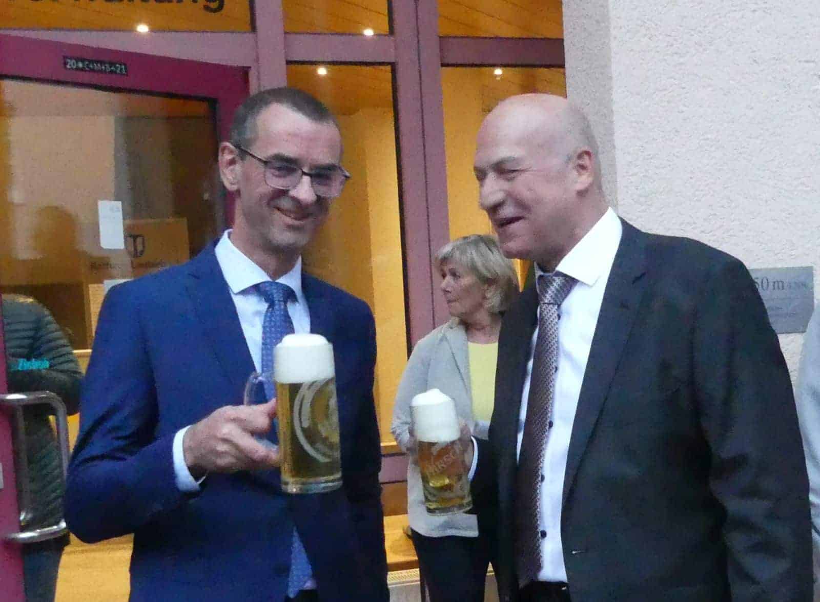 Wegen des Regens wollte Swoboda sich kurz fassen. Er dankte den Bewerberinne und Bewerbern und stellte schließlich die in Lauterbach nicht ganz unwichtige Frage: „Nehmen Sie die Wahl an?“ – „Natürlich!“ kam es sofort von einem sichtlich erleichterten Jürgen Leichtle. „Ich bin total geplättet“, meinte er und dankte für den großen Vertrauensvorschuss. Er freue sich total auf Lauterbach, versicherte er und lud alle zum Wahlbier bei Aladin und Frieda ein. Er habe nicht mit einem so großen Vertrauensvorschuss gerechnet, meinte er im Gespräch mit der NRWZ.