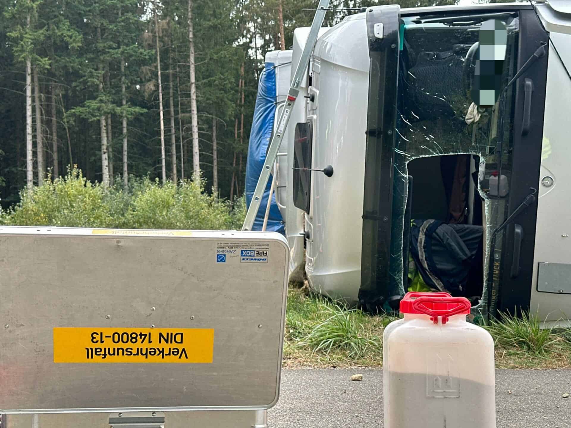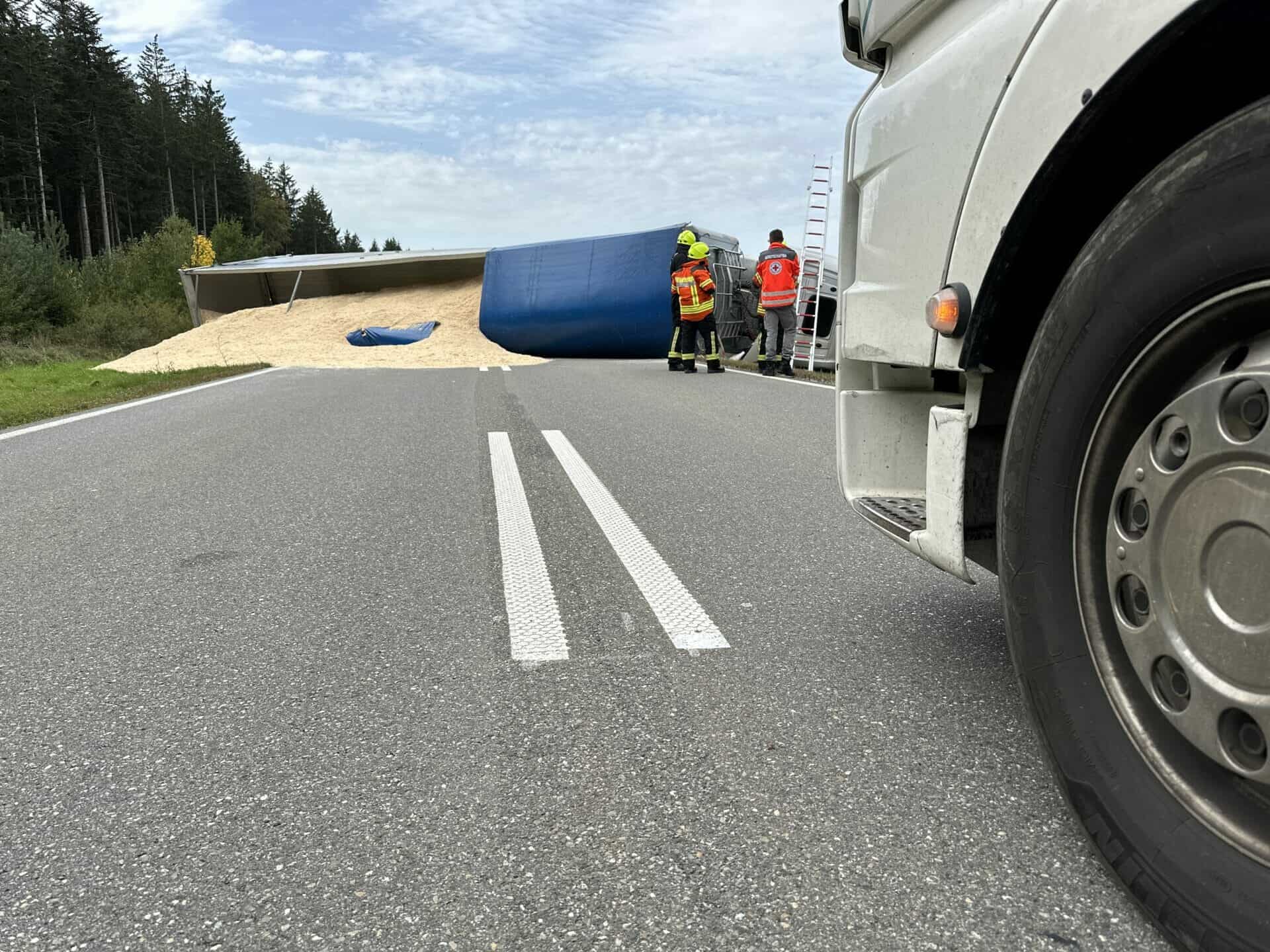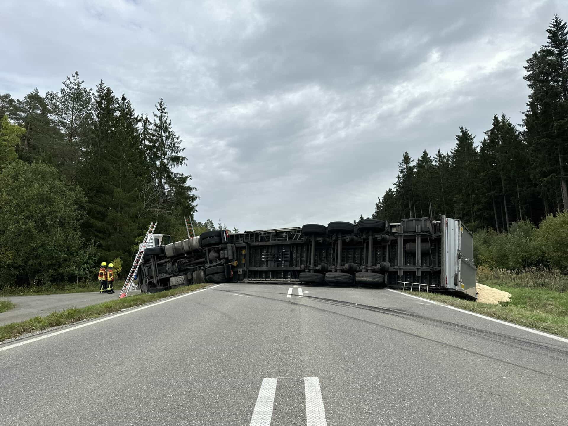 Die Ursache für den Unfall ist unklar, dem Spurenbild zufolge kam der Laster zunächst nach rechts ins Bankett und zog dann nach links. Das bestätigte auch die Polizei. Der Lkw kippte um. Ab diesem Moment blockierte er die komplette Fahrbahn. Die Verkehrsteilnehmer mussten sich auf eine längere Dauer der Sperrung einstellen. Die Polizei meldete den Unfall um 14.30 Uhr.