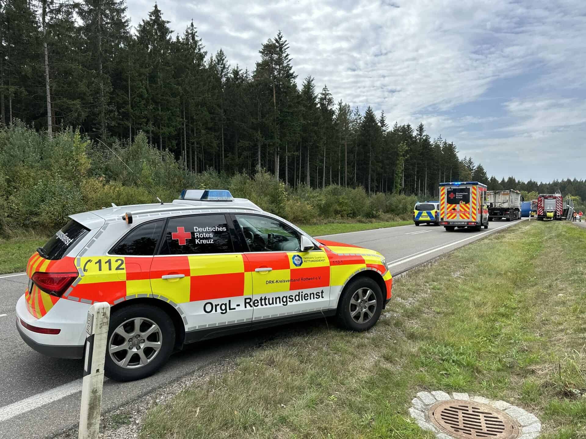 Lkw kippt um: B 462 zwischen Dunningen und Sulgen voll gesperrt