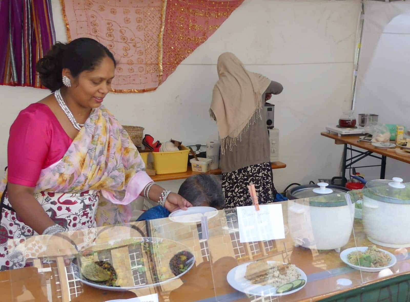 An den Ständen brutzelten und grillten die Teilnehmergruppen oder boten Spezialitäten aus ihrer Heimat an. Dabei reichte das Spektrum von Südamerika bis Bangladesh, von der Türkei bis Rumänen. Aber auch der Hettich Imbiss aus Deutschland war dabei. Ebenfalls mit Ständen vertreten waren die Peter-Meyer-Schule, die Caritas, der Eine-elt-Laden und Aladin und Frieda.