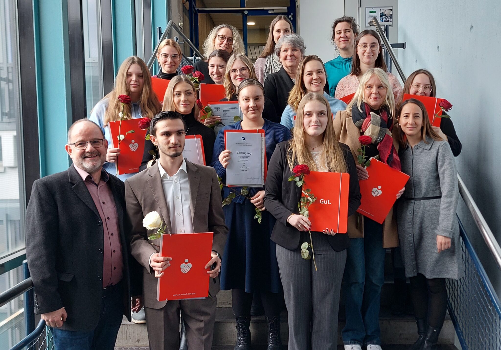 Rottweil – In einer kleinen Feierstunde an der Nell-Breuning Schule wurden zwölf Medizinischen Fachangestellte das Abschlusszeugnis der Berufsschule sowie das Kammerzeugnis und der Fachangestelltenbrief der Bezirksärztekammer Südbaden überreicht. Normalerweise endet der Ausbildungsgang mit der Prüfung im Sommer. Diese Berufsschülerinnen und -schüler zogen aber ihre Prüfung um ein halbes Jahr vor bzw. begannen ihre Ausbildung ein halbes Jahr später.