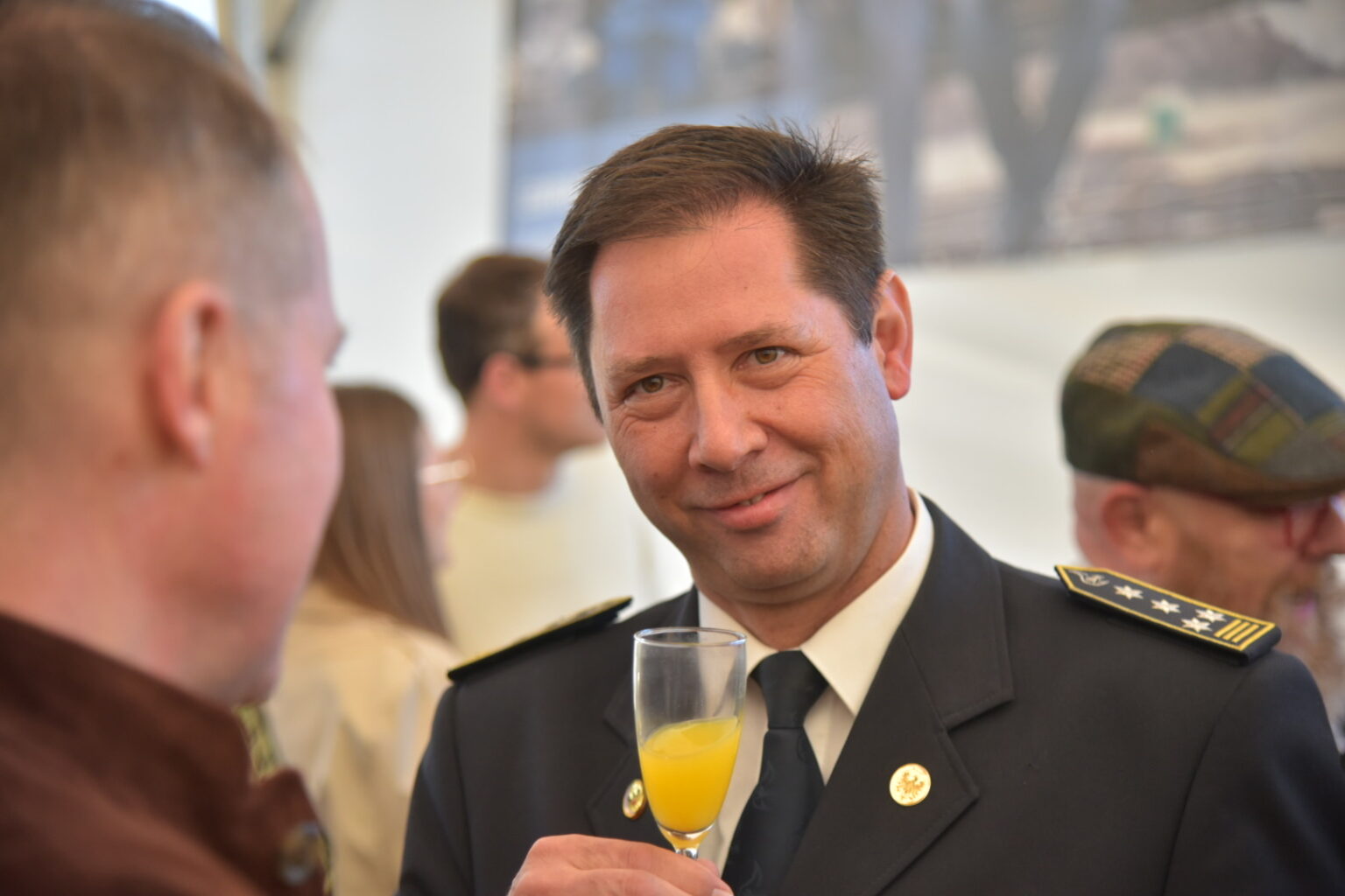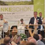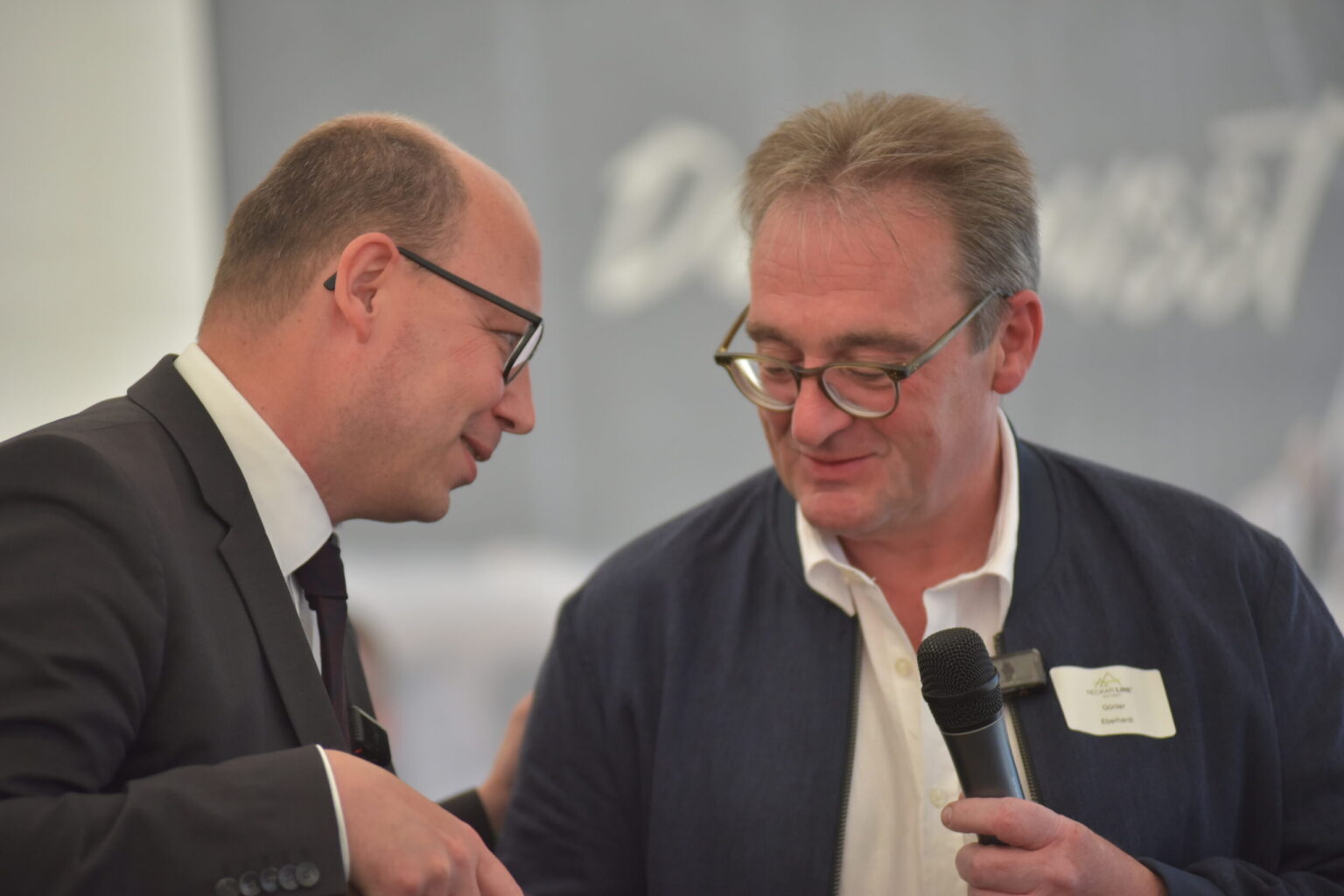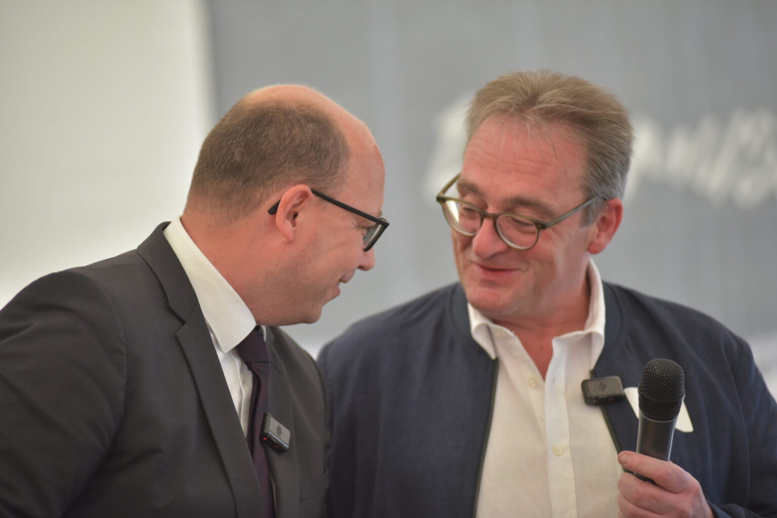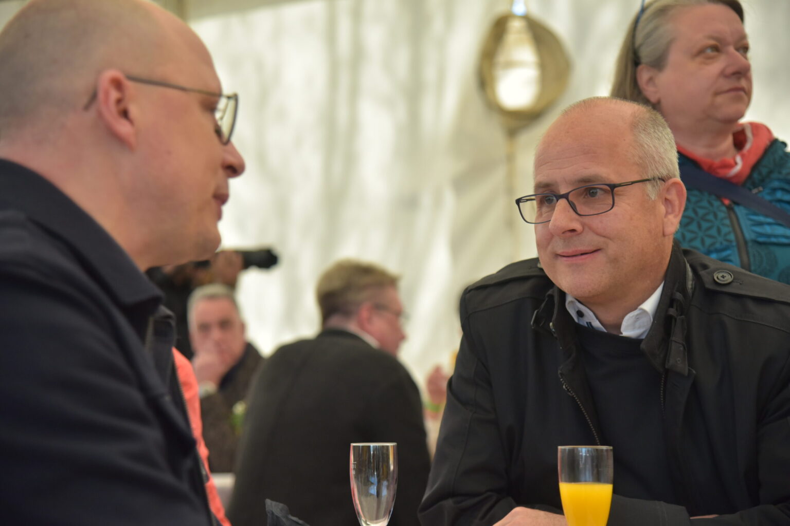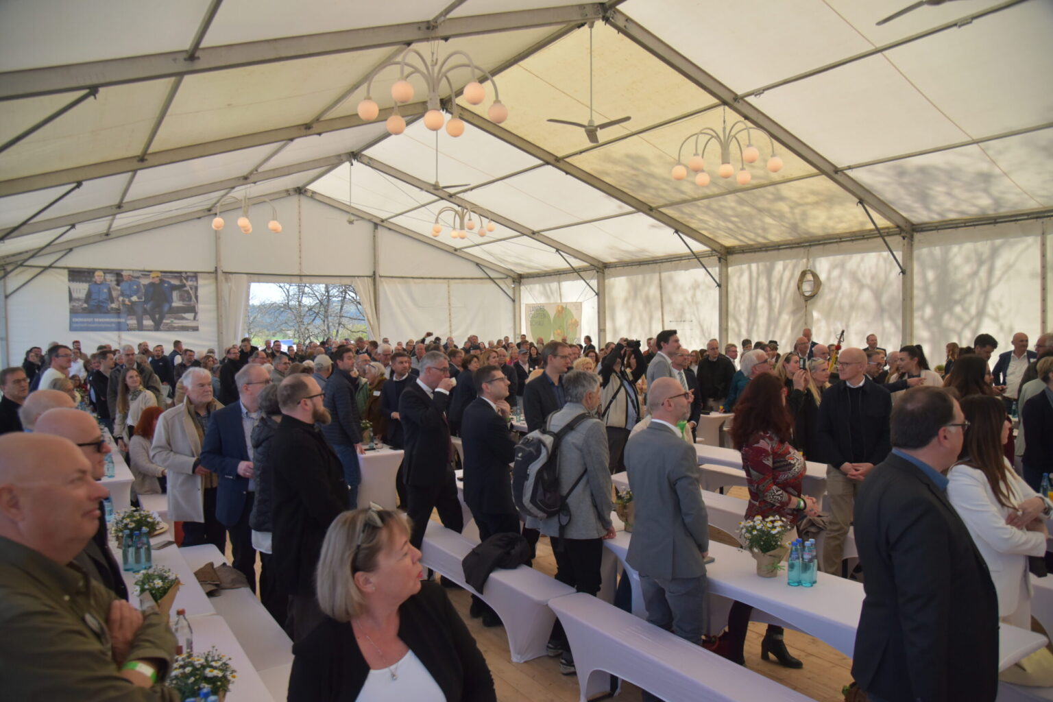 Rottweil – Im Festzelt am Besucherzentrum begann das Programm um 10.30 Uhr – zünftig und schmissig eingeleitet von den „Symbadischen Senfonikern“. Vips und Promis waren angekündigt, es fand sich dann neben Oberbürgermeister Dr. Christian Ruf wohl so weitgehend alles ein, was in der Region Rang und Namen und einen gewissen Bekanntheitsgrad hat. Höhepunkt war der symbolische Banddurchschnitt, mit dem die Brücke offiziell eröffnet wurde und über den wir gesondert berichten.