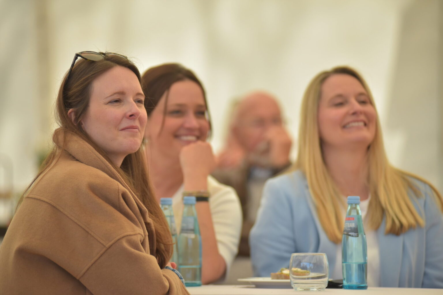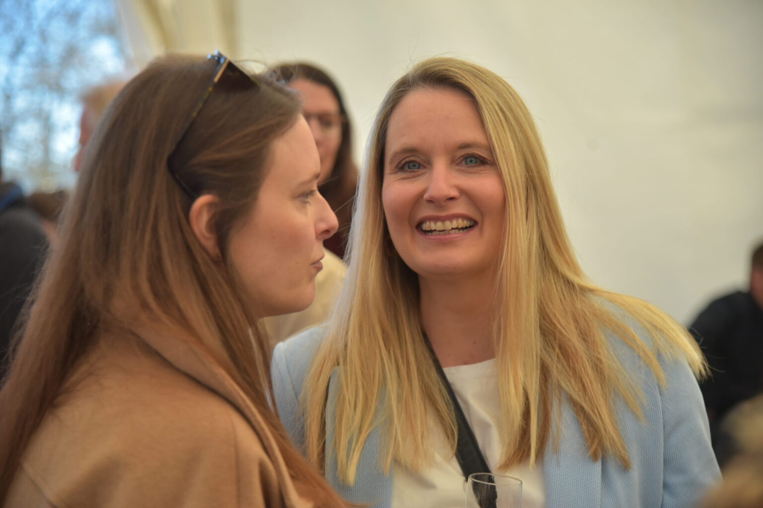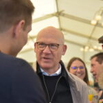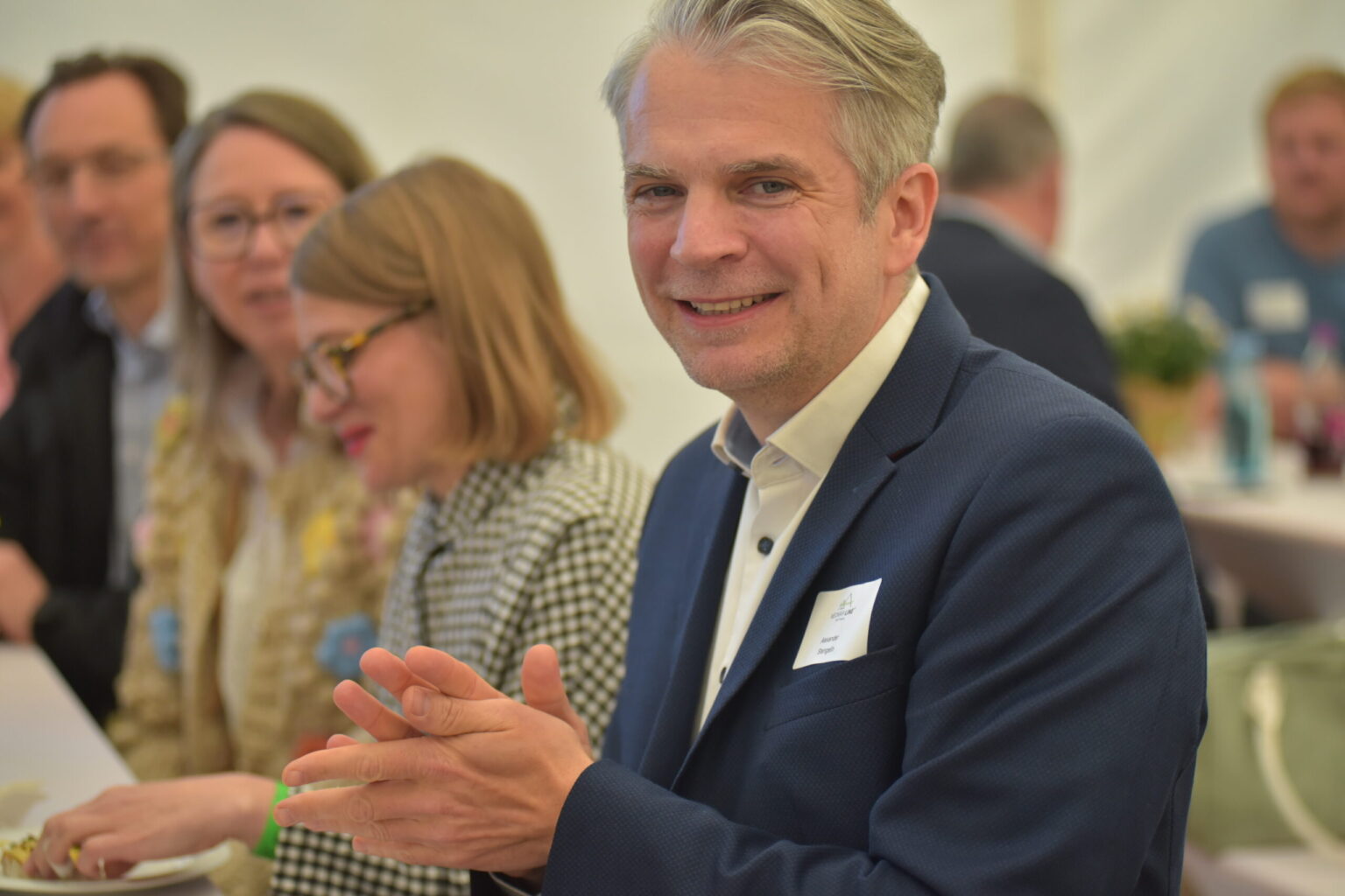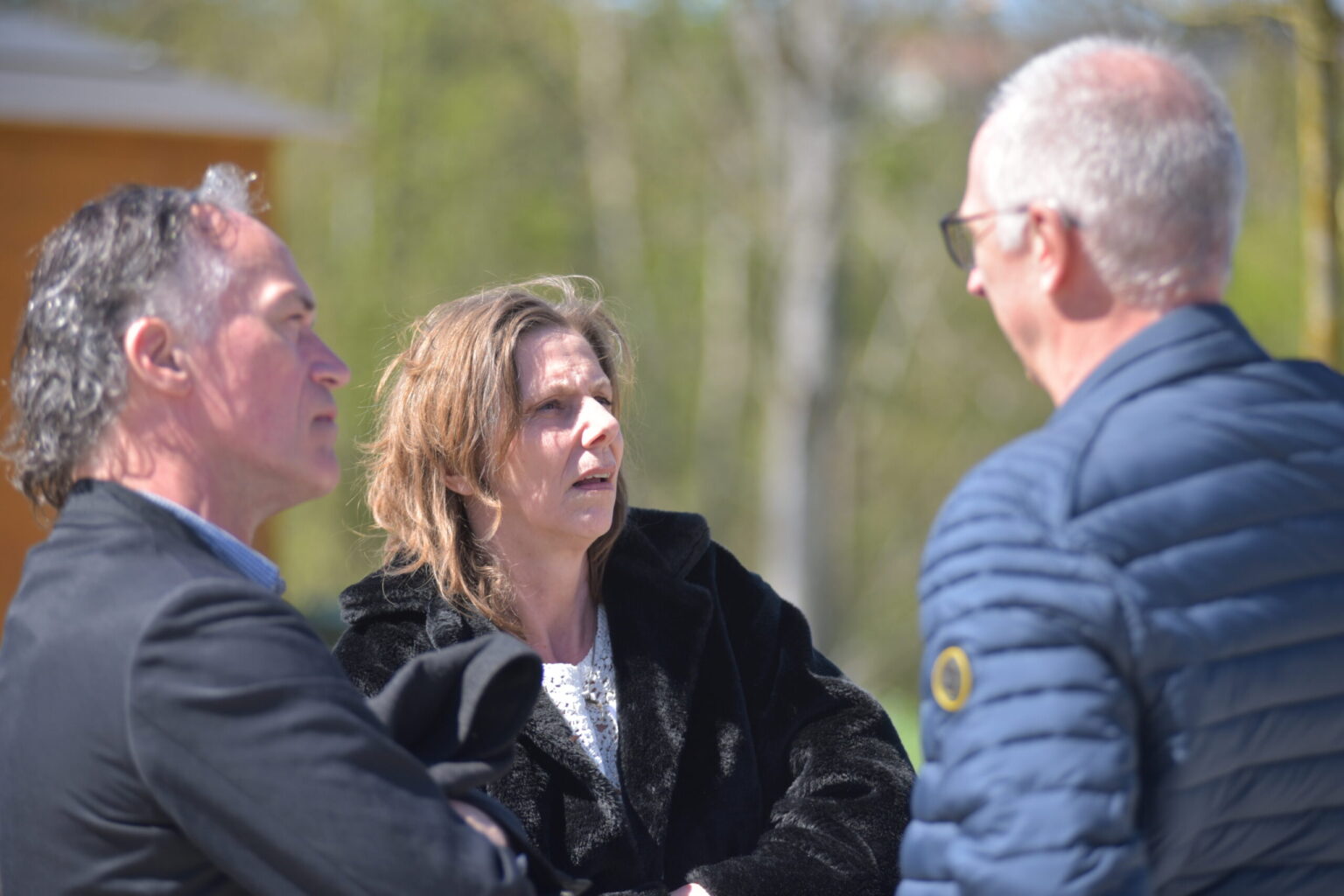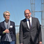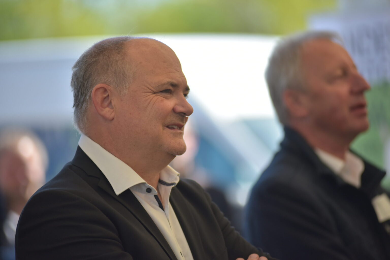 Noch bevor die neue Fußgänger-Hängebrücke Neckarline für die Öffentlichkeit zugänglich ist, wurde sie am Donnerstag, 23. April 2026, im Rahmen einer internen Eröffnungsveranstaltung erstmals offiziell in Betrieb genommen. Rund 300 geladene Gäste aus Politik, Wirtschaft und der Region kamen dazu am Vormittag auf dem Berner Feld zusammen. Sie schwankten anschließend fast allesamt über die neue Brücke auf die Innenstadt zu.