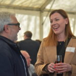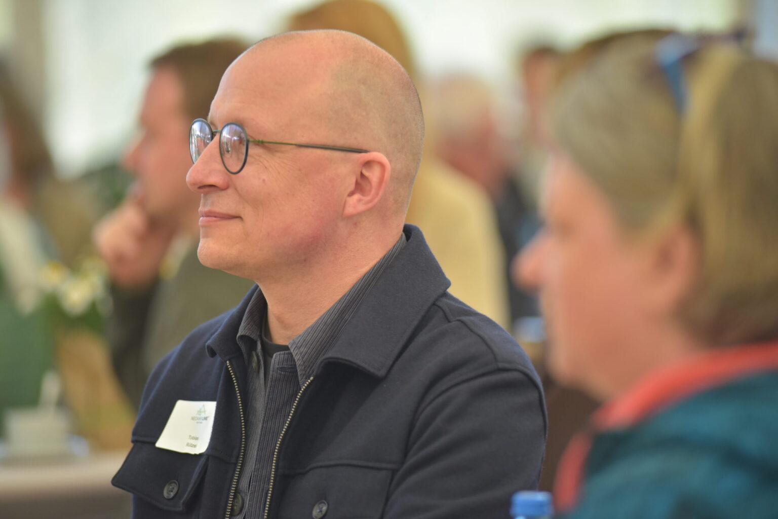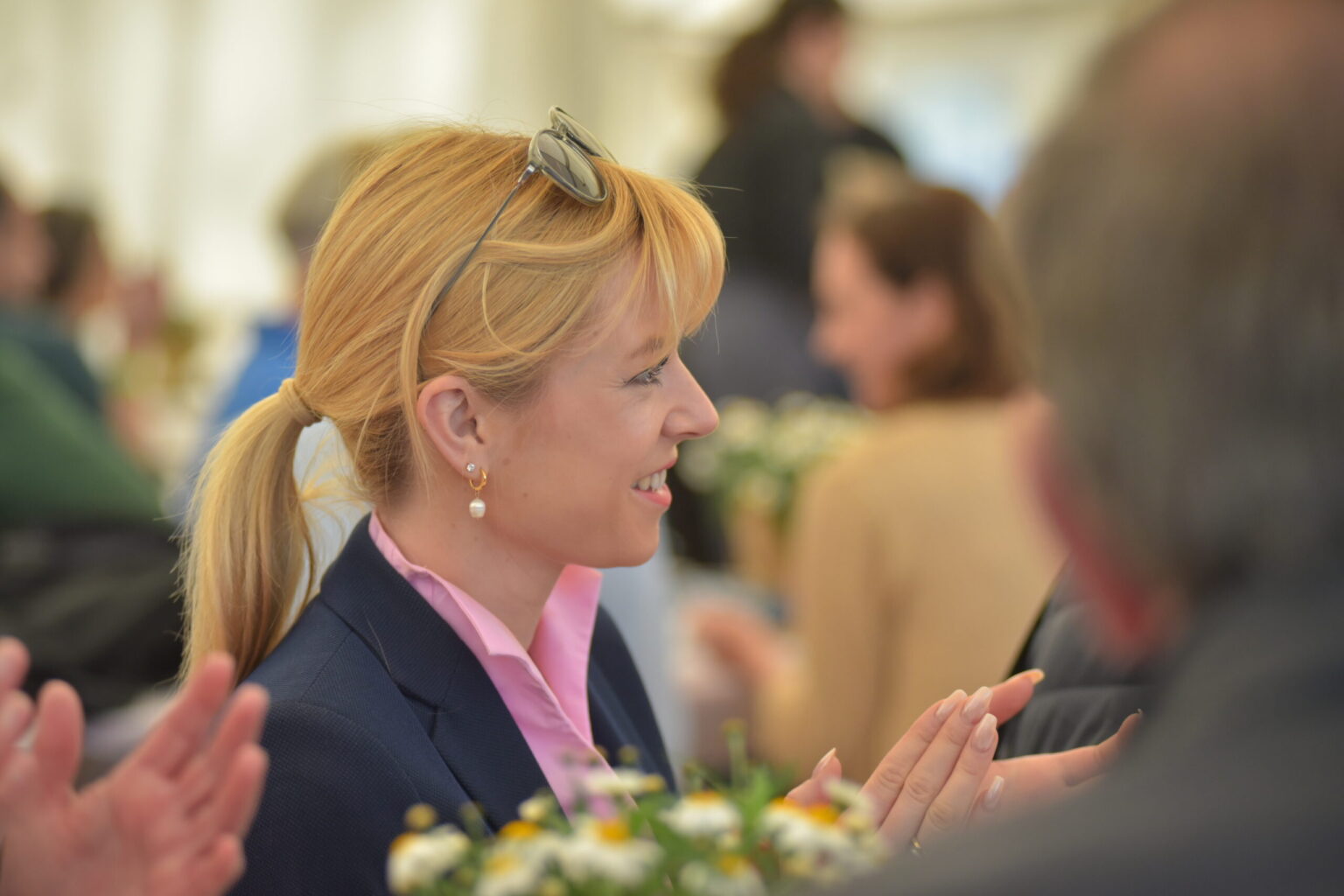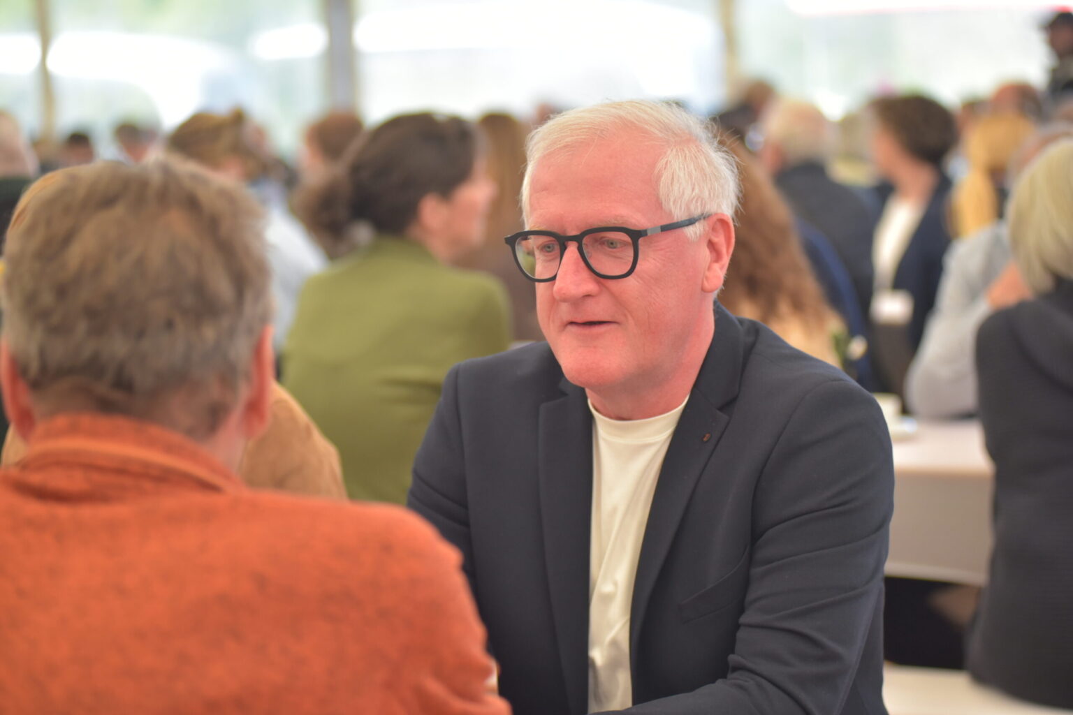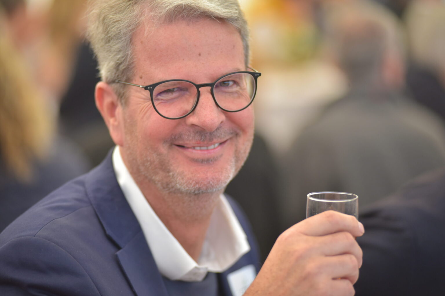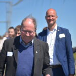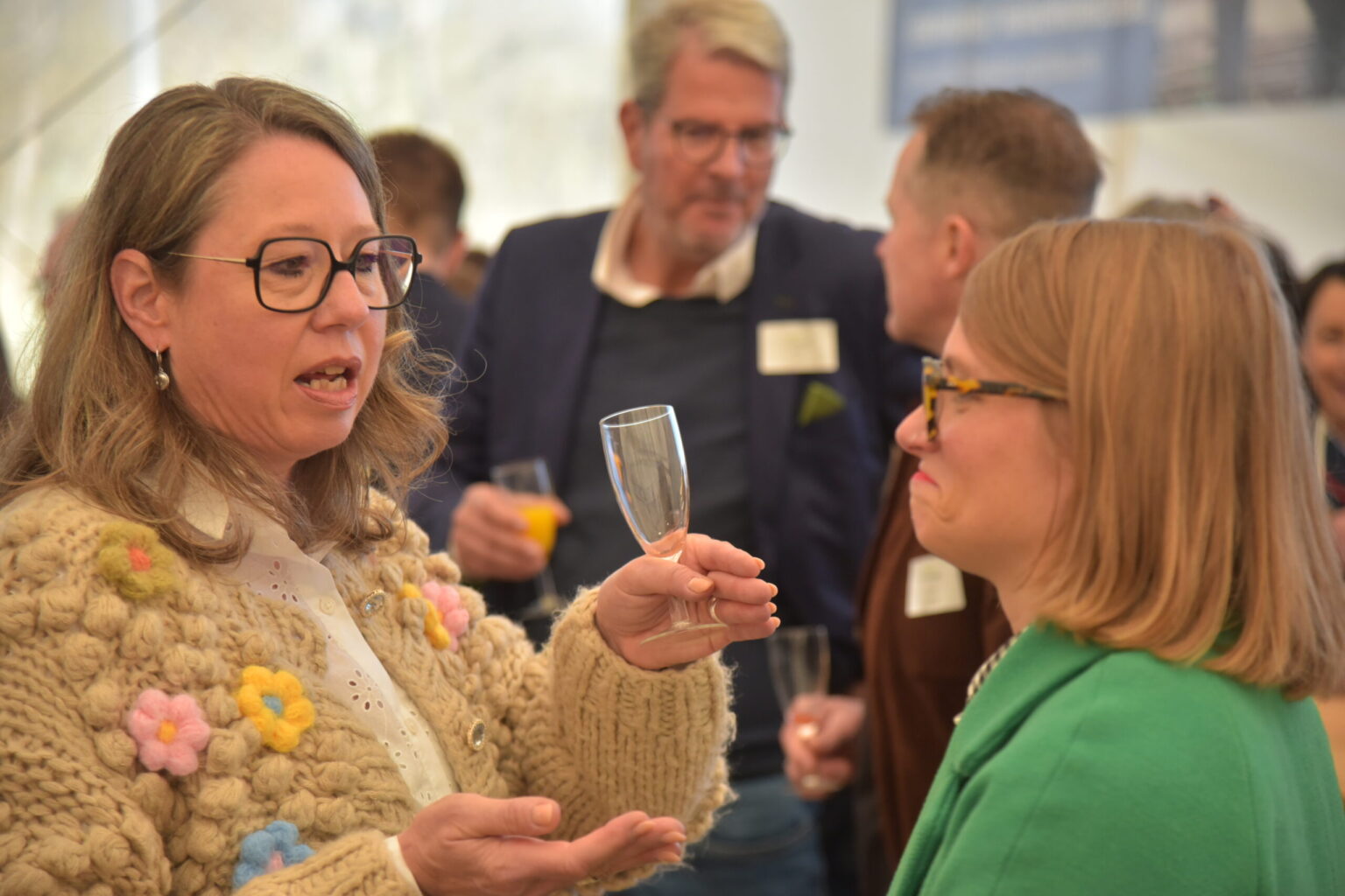 Noch bevor die neue Fußgänger-Hängebrücke Neckarline für die Öffentlichkeit zugänglich ist, wurde sie am Donnerstag, 23. April 2026, im Rahmen einer internen Eröffnungsveranstaltung erstmals offiziell in Betrieb genommen. Rund 300 geladene Gäste aus Politik, Wirtschaft und der Region kamen dazu am Vormittag auf dem Berner Feld zusammen. Sie schwankten anschließend fast allesamt über die neue Brücke auf die Innenstadt zu.