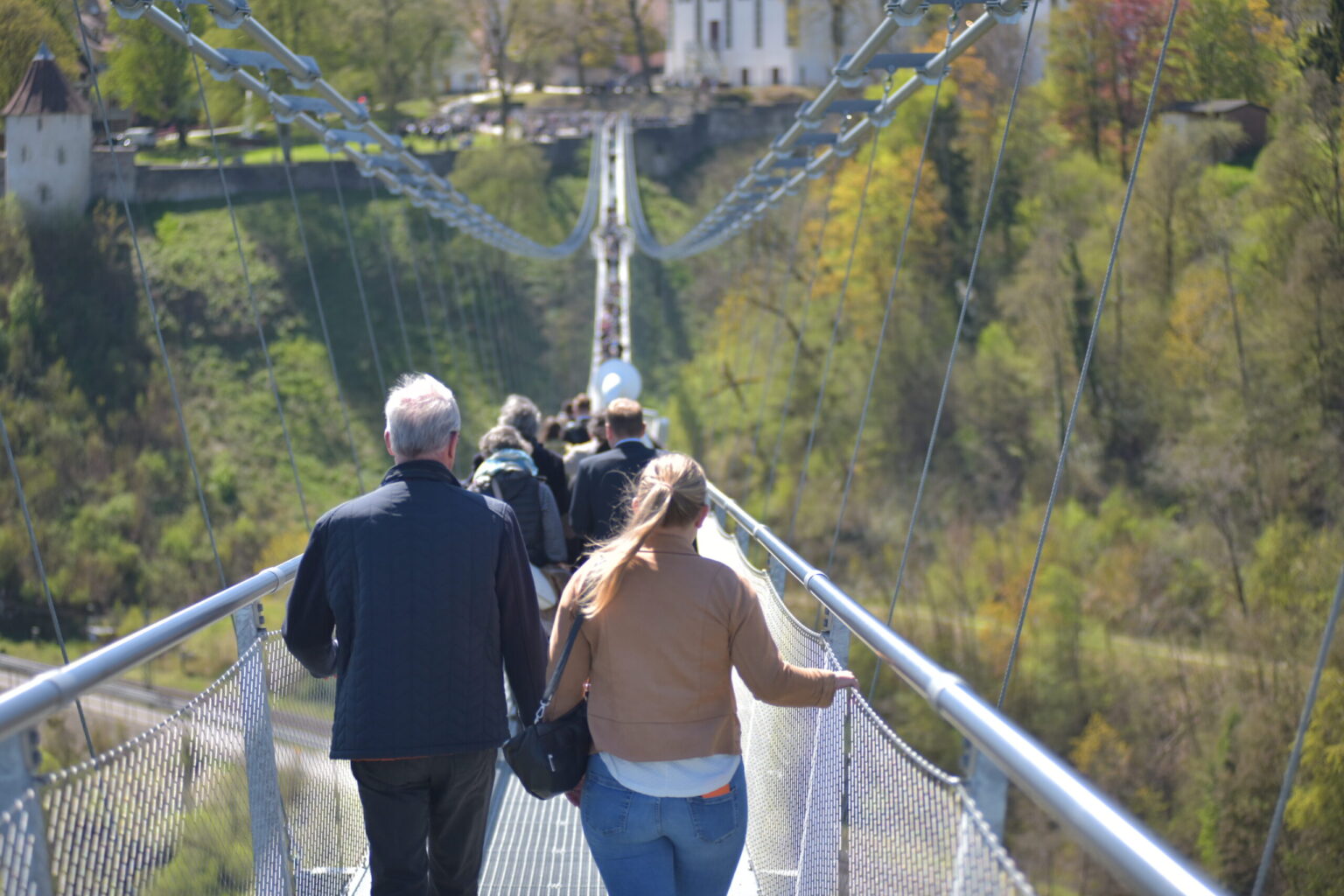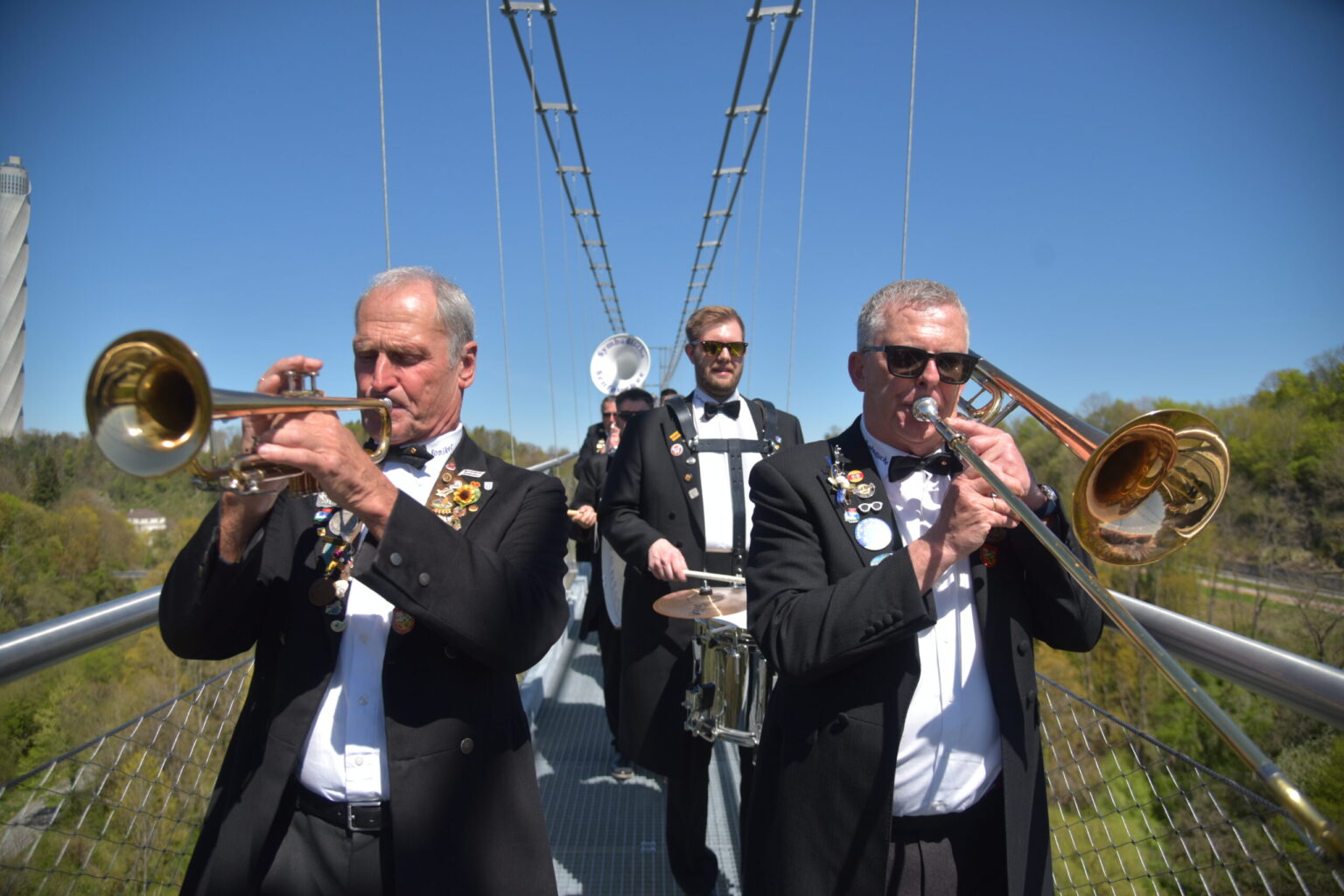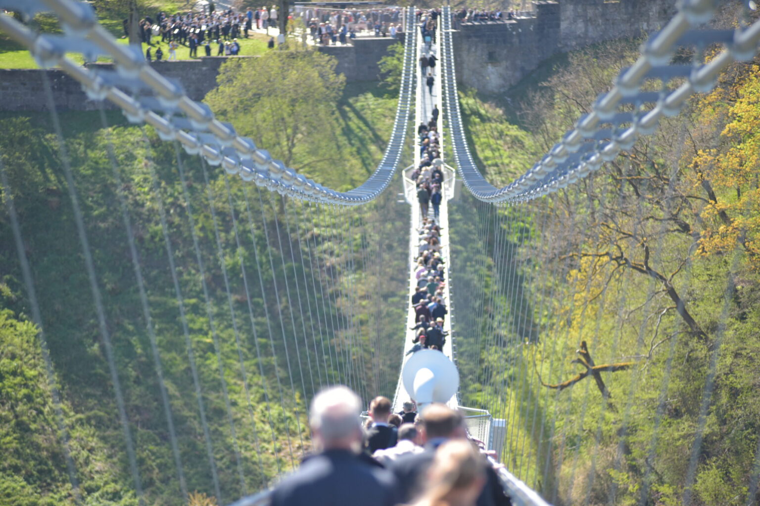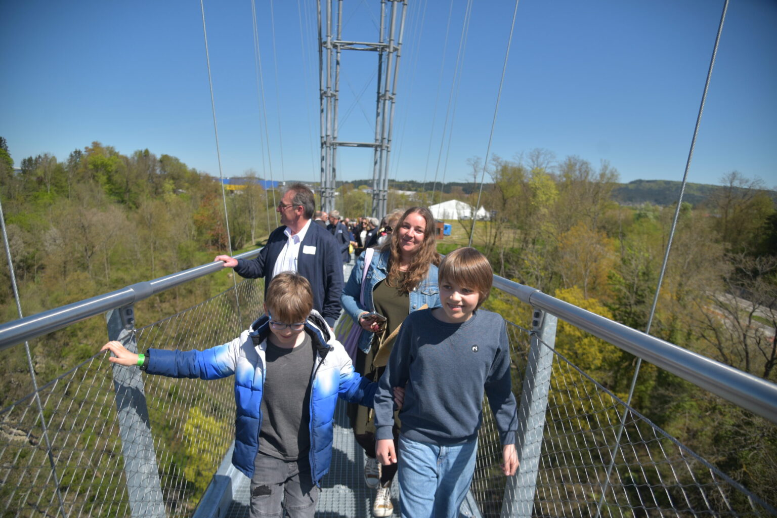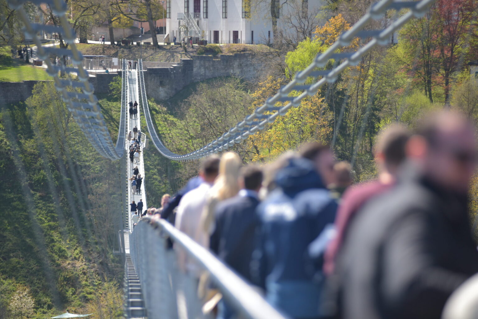 Die Bilder dieser Galerie zeigen damit nicht nur den offiziellen Startschuss – sondern auch den Auftakt zu einem Wochenende, das die ganze Stadt in eine Erlebnisfläche rund um die neue Hängebrücke verwandeln soll.