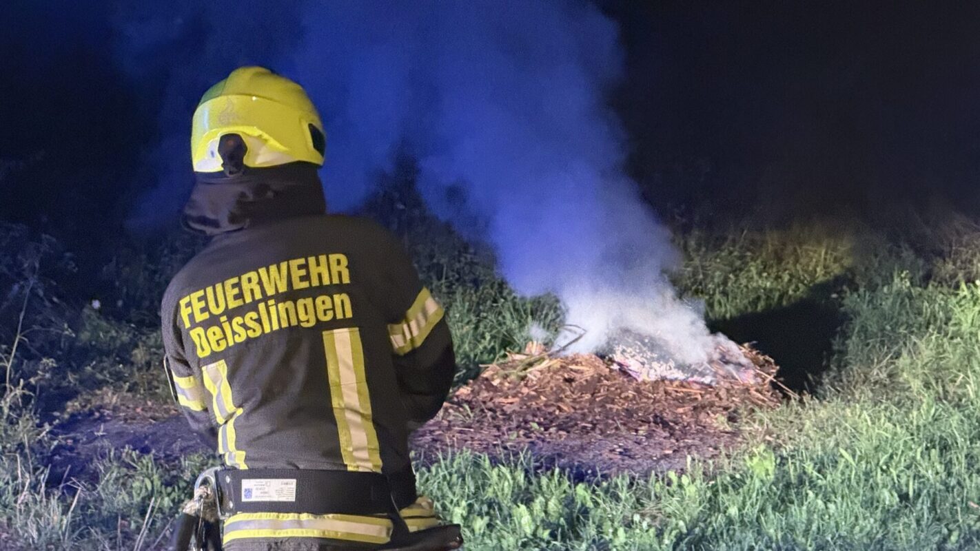 Ein kleineres, aber echtes Feuer fanden die dann unter dem Stichwort „B2 – Rauchentwicklung unklar im Freien“ gegen 21 Uhr zum Bahnhof Trossingen gerufenen Kräfte der Feuerwehr Deißlingen vor. Da verbrannte gerade jemand Grünschnitt – ohne das gegenüber der Feuerwehr beziehungsweise der Leitstelle vorher anzukündigen und, schlimmer noch, ohne das Feuer zu beaufsichtigen, wie es vor Ort hieß. Mit zwei Fahrzeugen rückte die Deißlinger Wehr an, eines wurde eingesetzt, ein Schlauch und etwas Wasser genügte, um das Feuer zu löschen. Eine Streife der Polizei war da.