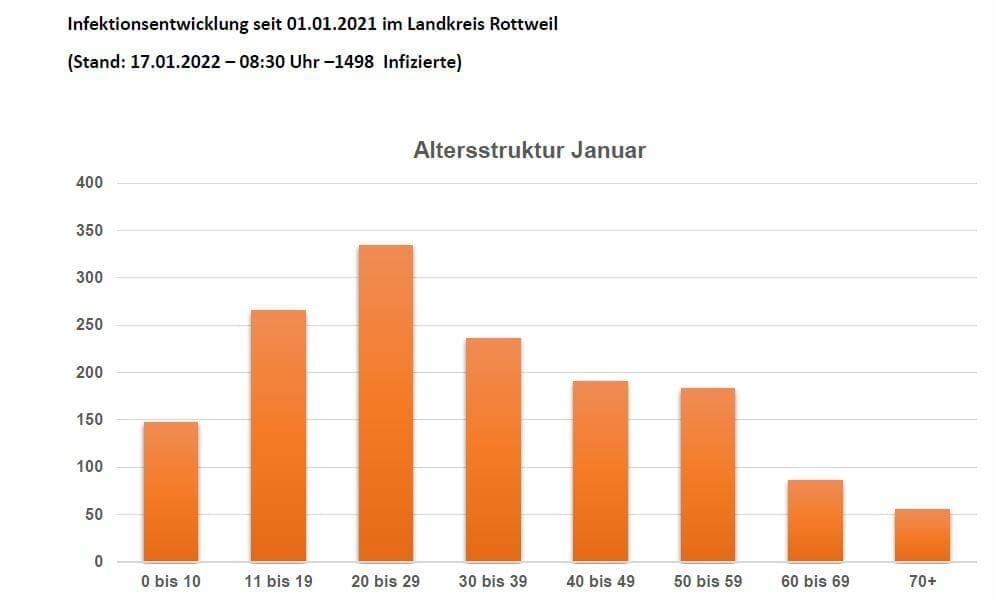 Bei der Altersstruktur der Infizierten überwiegen jetzt die jungen Jahrgänge. Die Hauptgruppe seit Jahresbeginn seien die 20- bis 29-Jährigen, gefolgt von den 30- bis 39-Jährigen und den 11- bis 19-Jährigen. Erfreulich sei, dass die über 70-Jährigen inzwischen die mit Abstand kleinste Gruppe bildeten.