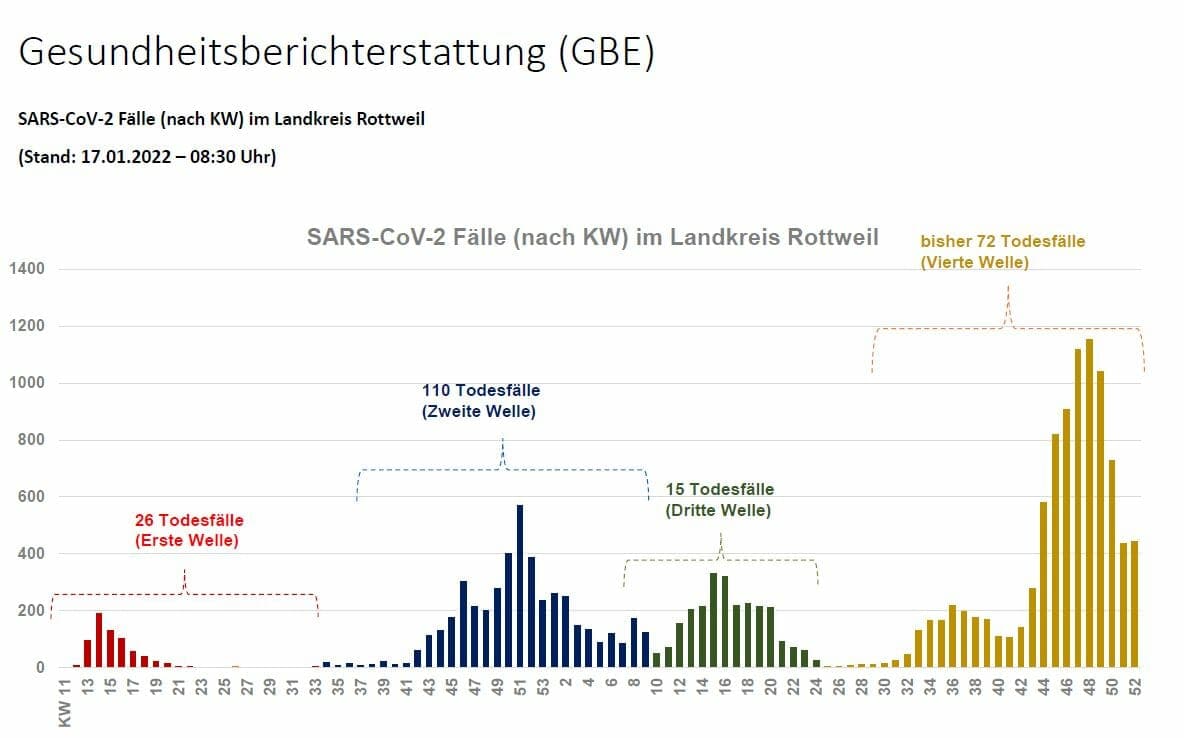 Kreis Rottweil. Mit schlechten und guten Nachrichten wartete Landrat Wolf-Rüdiger Michel bei der heutigen Pressekonferenz zu Corona auf. Einerseits habe „die Pandemie an Fahrt gewonnen“. Die Inzidenz habe sich innerhalb einer Woche von 320 auf 630 nahe zu verdoppelt. Andererseits sei die Zahl der mit oder an Corona verstorbenen Menschen stark zurückgegangen.