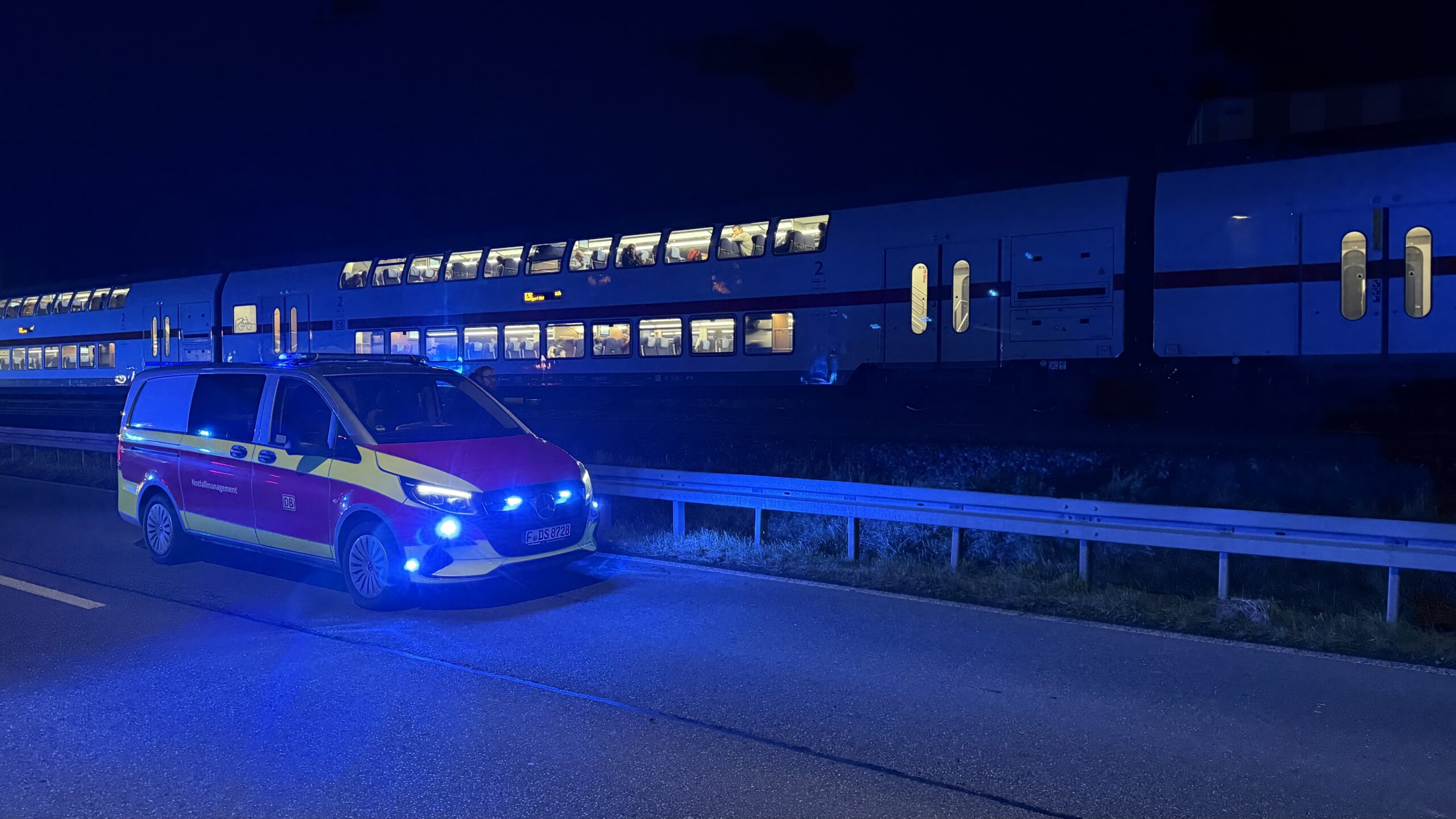 Personen im Gleisbereich: IC Singen-Stuttgart gestoppt, Rettungskräfte suchen Zug ab