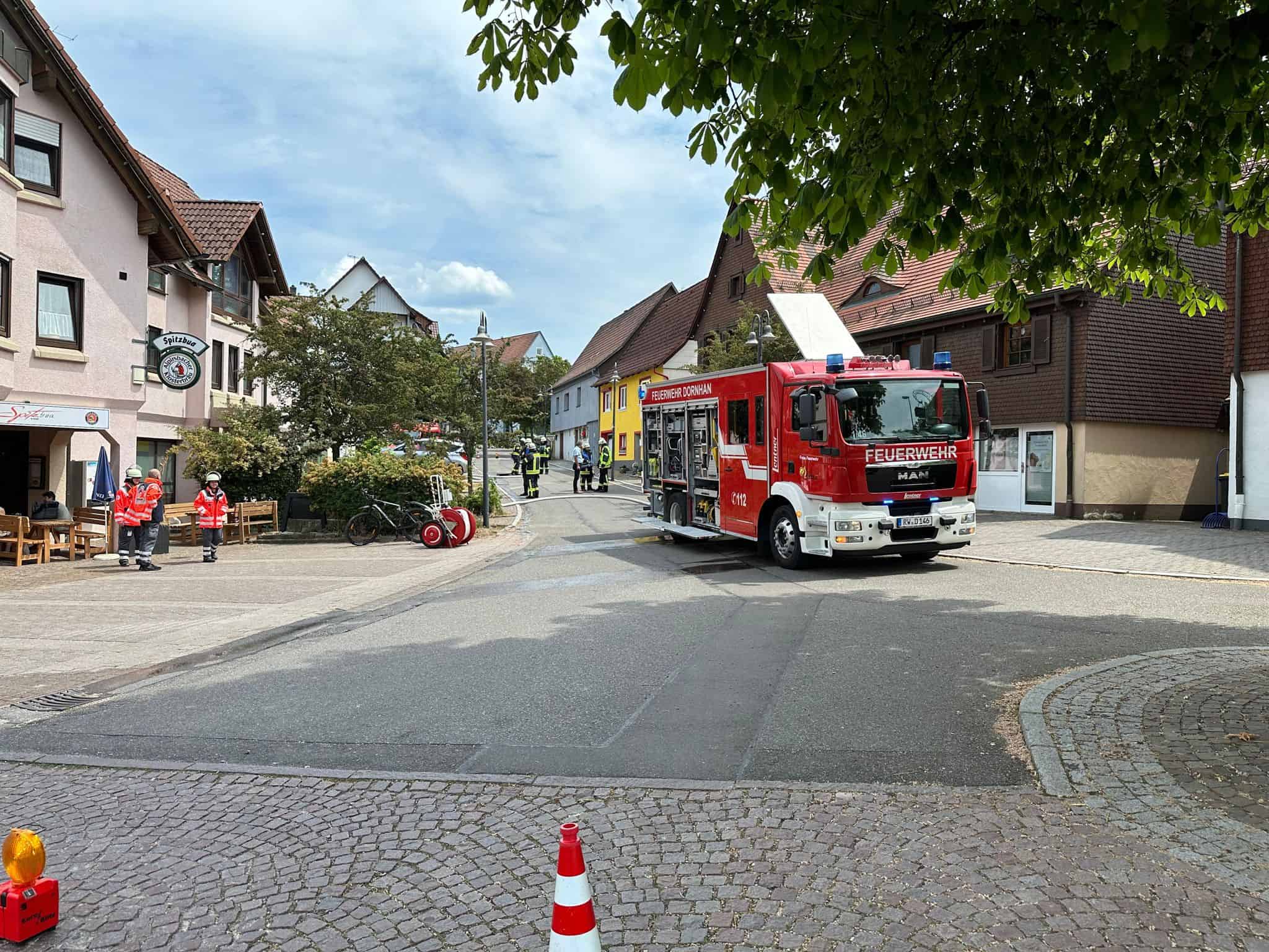 Hintergrund für den Einsatz war zunächst eine starke Rauchentwicklung aus einem Gebäude mitten in Dornhan. Die Feuerwehr der Stadt samt den Teilortwehren ist in Vollalarm versetzt worden. Zudem die zugeordnete Drehleiter aus Loßburg.