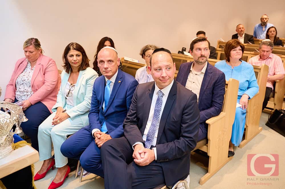 Diese letzten Buchstaben schrieben hinein: den ersten Rami Suliman, der Vorsitzende der IRG Baden, den zweiten Landesrabbiner Moshe Flomenmann, den dritten Dr. Danyal Bayaz, Finanzminister Baden-Württemberg, den vierten Dr. Christian Ruf, Oberbürgermeister der Stadt Rottweil, den fünften Daniel Born, der Vizepräsident des Landtags von Baden-Württemberg, den sechsten und siebten die Bundestagsabgeordneten Derya Türk-Nachbaur und Maria-Lena Weiss, den achten Tatjana Malafy von der Israelitische Kultusgemeinde Rottweil/VS und schließlich den neunten Wolfgang Rüter-Ebel, Dekan im Evangelischen Kirchenbezirk Villingen.