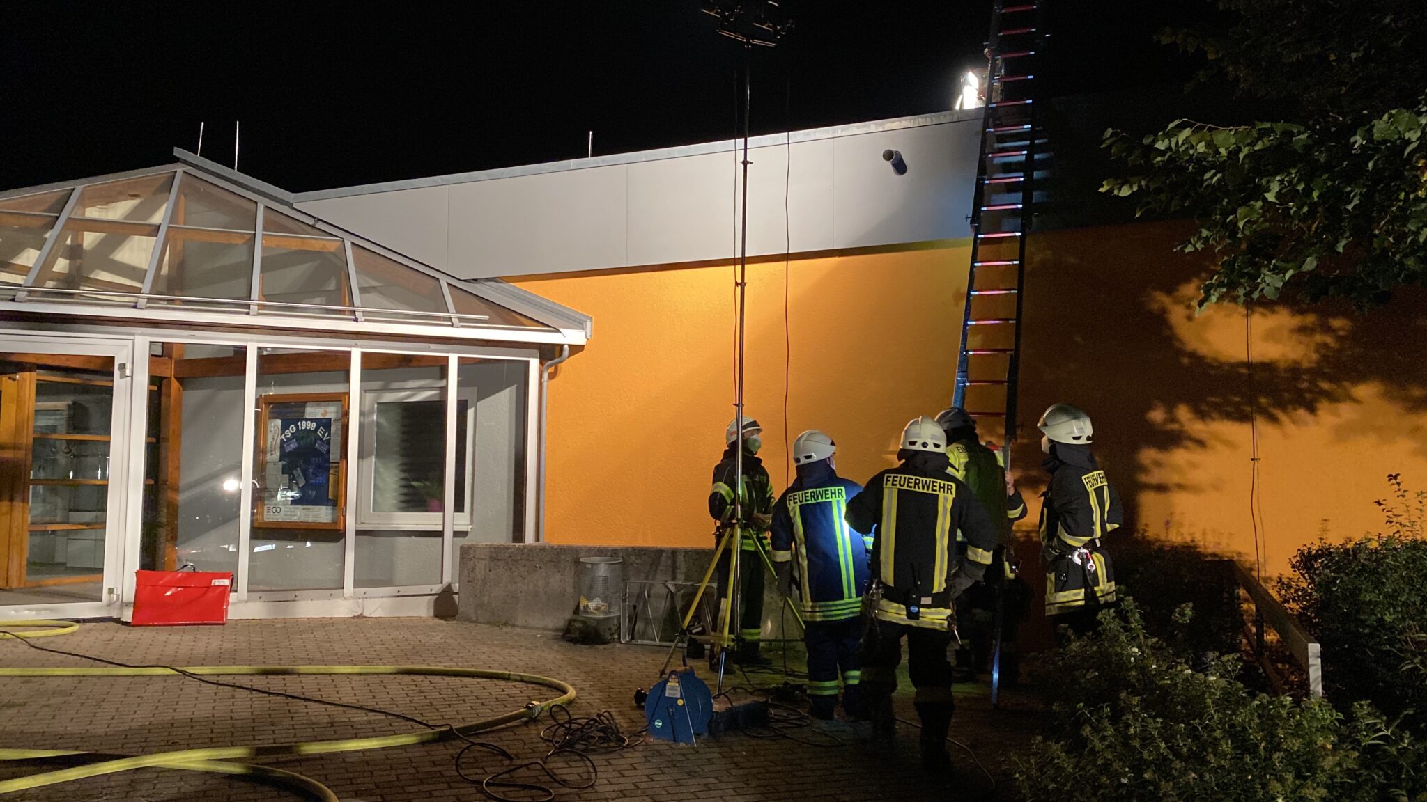 Die Feuerwehr Bösingen-Herrenzimmern ist am Dienstagabend zur Mehrzweckhalle in Bösingen gerufen worden. Dort, im Bereich des Schwimmbads, war ein Schwelbrand ausgebrochen, offenbar nach Dacharbeiten. Die Feuerwehr der beiden Orte war im Vollalarm. Zudem rückte das DRK mit acht ehrenamtlichen Helfern an.