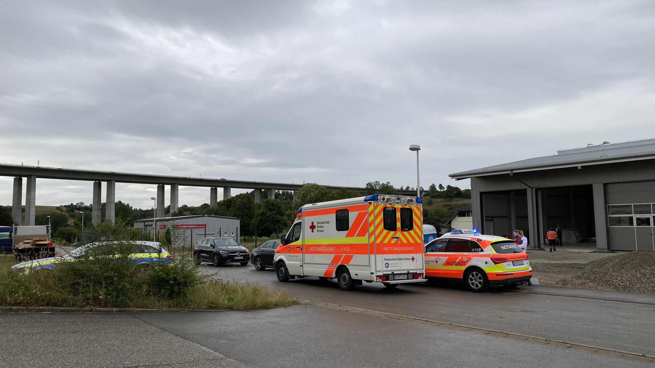 Update – die Polizei berichtet wie folgt: In dem Neubau einer Werkhalle in der Oberen Talstraße sind am Donnerstag drei Arbeiter beim Innenausbau verletzt worden. Einer davon schwer. Mehrere Hundert Kilo schwere Holzplatten sollten in der Halle als Zwischendecke für den Bürobereich eingebaut werden. Hierzu wurde eine Platte am späten Nachmittag mit einem Teleskoplader in etwa drei Meter Höhe gehoben. Zwei Arbeiter standen bereits auf der Zwischendecke, ein weiterer Mitarbeiter, sowie der Fahrer des Hubfahrzeuges befanden sich am Hallenboden. Vermutlich durch einen Kommunikationsfehler verrutschte die schwere Ladung, die in der Folge mitsamt den beiden Montagearbeitern herunterfiel. Einer der gestürzten Arbeiter, ein 55-Jähriger aus dem Kreis Freudenstadt, wurde schwer am Kopf verletzt und erlitt ein Schädel-Hirn-Trauma. Er wurde mit einem Rettungshubschrauber in eine Klinik geflogen. Der andere gestürzte Arbeiter wurde leicht im Gesichtsbereich verletzt. Sein auf dem Hallenboden stehender Arbeitskollege erlitt leichte Schulterverletzungen. Beide wurden mit dem Rettungsdienst in ein Krankenhaus verbracht. Spezialisten der Verkehrs- und Kriminalpolizei haben die Ermittungen aufgenommen.