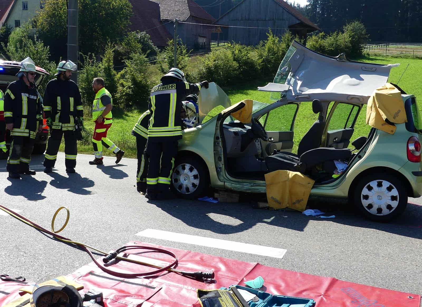 An einer Kreuzung waren ein Fiat Sportwagen und ein Renault zusammengeprallt, weil der Fahrer des Renault von Tennenbronn kommend die Vorfahrt des Fiatfahrers, der von Hardt Richtung St. Georgen fuhr, missachtet hatte. Der Fahrer des Renault wurde in seinem Wagen eingeklemmt und von der Feuerwehr befreit. Die Beifahrerin im Renault und der Fiatfahrer blieben offenbar unverletzt.