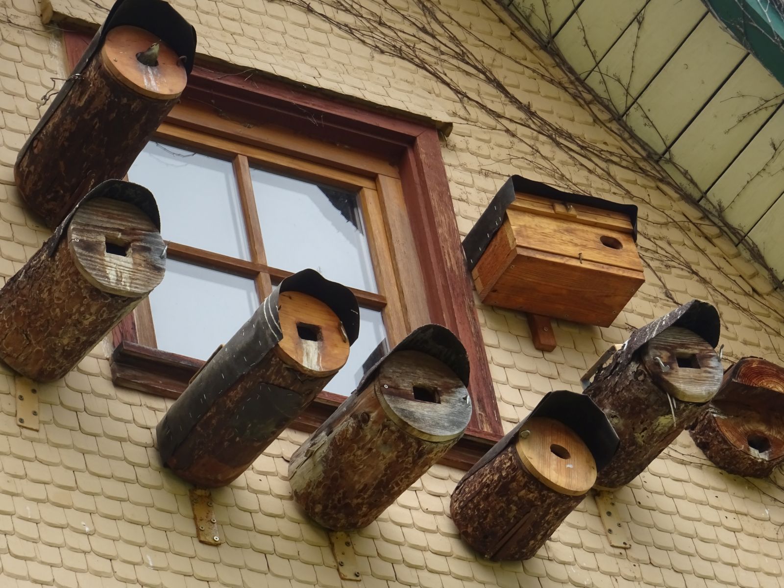 Bei den Nisthöhlen hat er sich von Reinhold Bantle aus Hochmössingen Baumstämme ausdrechseln lassen, die auf der Rückseite mit Scheibe zum Reinigen der Höhlen versehen sind.