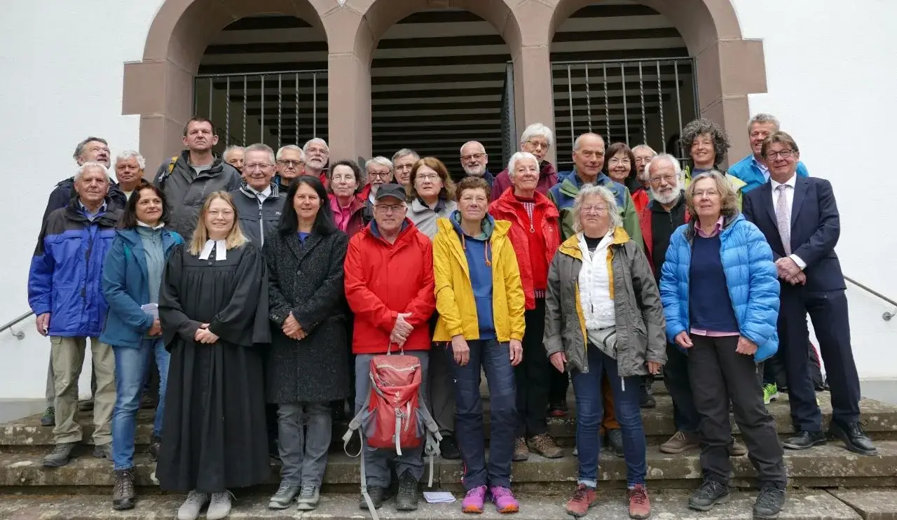 Eine große Gruppe Wanderer aus mehreren Landkreisen Baden Württembergs fand sich zum Start des Ge(h)denkens mit einer ökumensichen Andacht in der Friedhofskapelle des KZ-Lagers Schörzingen ein, um die Orte der „Wüste“- Unternehmen am Rande der schwäbischen Alb nach 80 Jahren Todesmärsche im Gedenken zu erwandern.