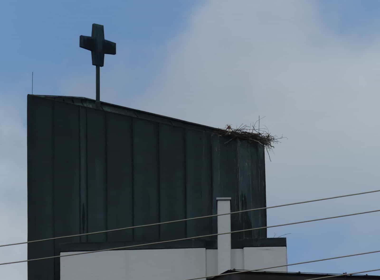 Ende März hatte ein Bild mit Gestrüpp am Kirchturm der katholischen Kirche in Waldmössingen darauf hingedeutet, dass dort Störche ein Nest bauen. Immer wieder war das Storchenpaar auch beobachtet worden. Dann kam die kuriose Raben-Storch-Taube-Geschichte. Und nun hab ich einen Storch gestern dort beobachtet.