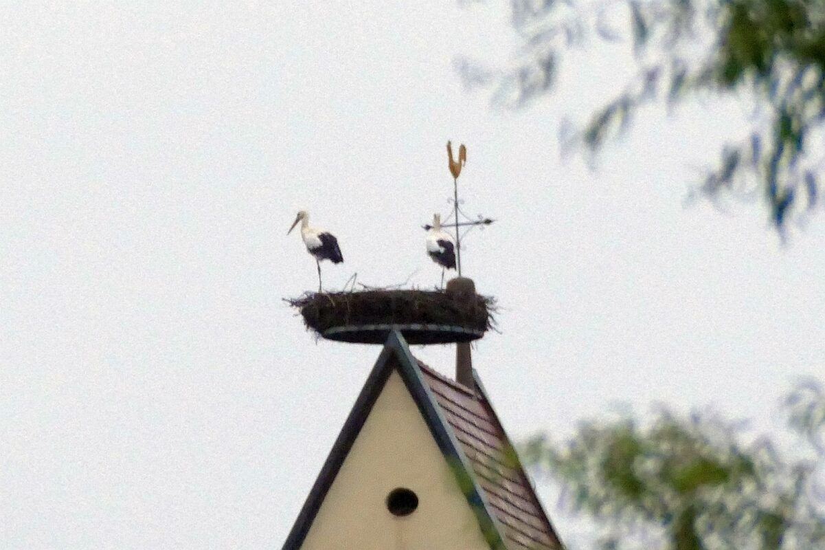 Info: Das Nest werde bereits seit drei Jahren geleert, berichtet Polet. Im Letzten Jahr gab es drei Jungstörche, von denen aber zwei als Küken starben. Dieses Jahr brüteten die Eltern vier Junge aus. Einen Jungstorch warfen sie allerdings aus dem Nest, vermutlich wegen Futtermangel.