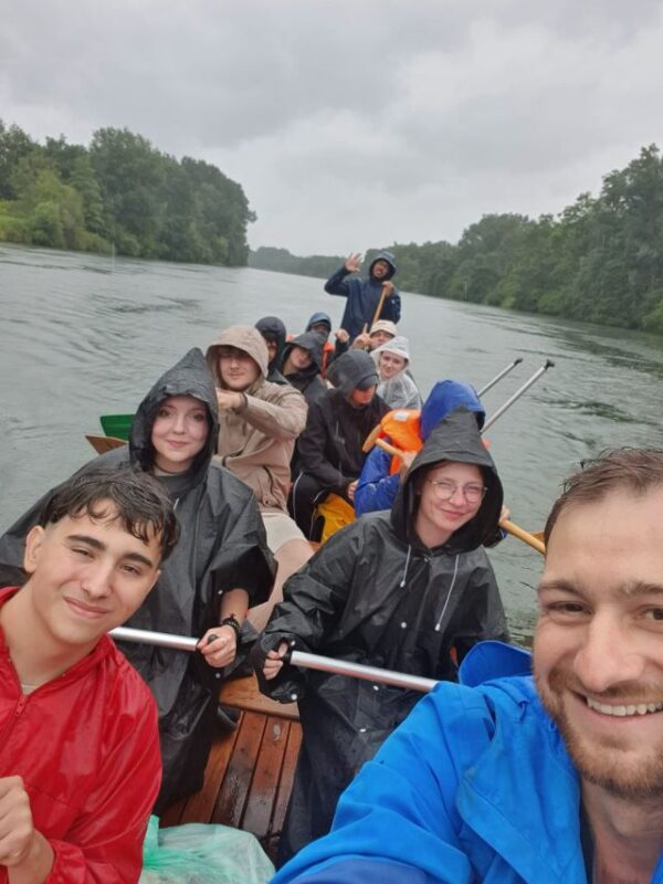 Rottweil – Der erste Reisetag beginnt mit der Anreise der Schülerinnen und Schüler mit dem Reisebus von der EHG nach Günzburg. Bei den Managern begann die abschließende Fahrt des Schuljahres 2024/25 mit einer rasanten Kartfahrt. Den Rest der etwa 30 Kilometer Flussetappen legen die Klassen auf schuleigenen Zillen zurück, die etwa 450 Kilo wiegen und über zehn Meter lang sind. Gesteuert werden sie mit einem Holzruder und die allmählich größer werdende Strömung treibt die Boote unmerklich an – hauptsächlich muss kontinuierlich gepaddelt werden.