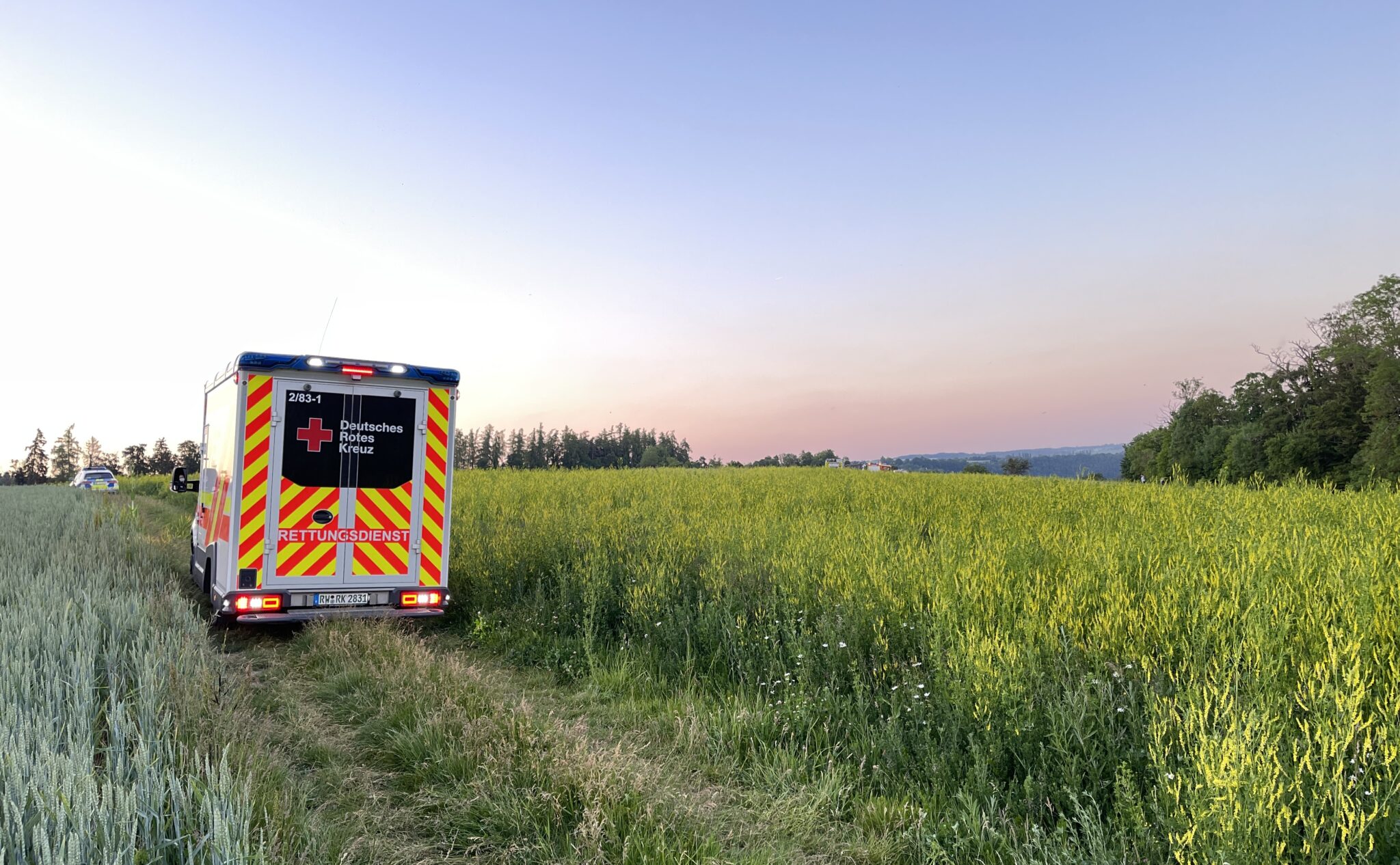 Die Absturzstelle war für die Einsatzfahrzeuge nur über einen Schotterweg erreichbar. Seitens des DRK waren ein Rettungswagen und ein Notarzt vor Ort.