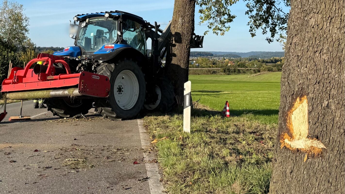 Traktor prallt gegen Baum – Fahrer im Krankenhaus