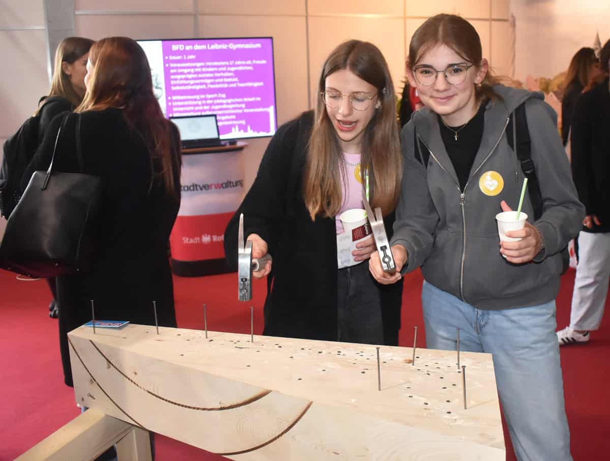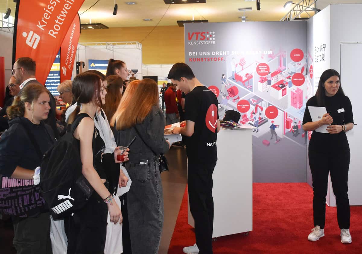 Rottweil – Mehr als 850 Schülerinnen und Schüler aus Rottweil und der Region nutzten die Möglichkeit, sich über die breite Vielfalt an Betrieben und Ausbildungsmöglichkeiten zu informieren. 95 Aussteller präsentieren sich an 100 Messeständen in den Hallen sowie auf dem Freigelände.