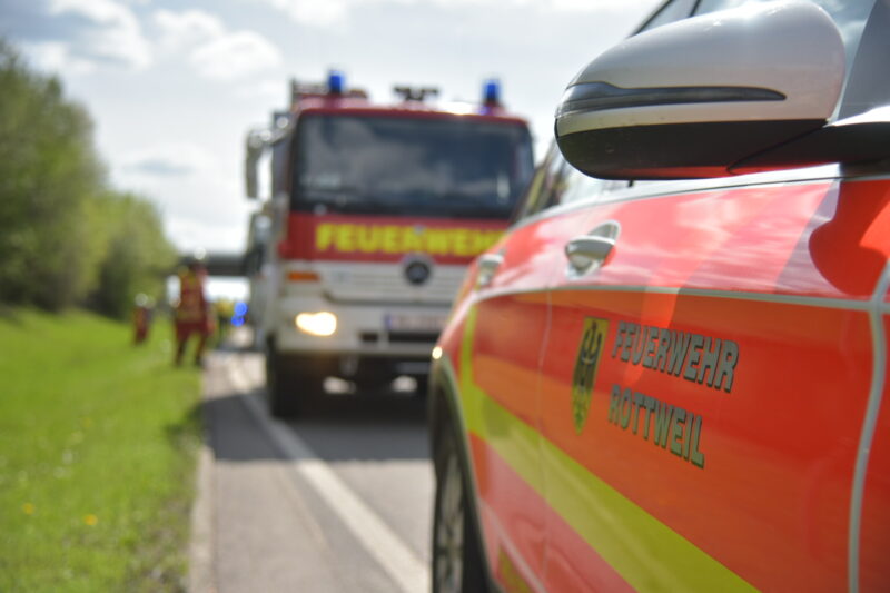 NEU Brennender Reifen an Lkw auf der A81 – Feuerwehr sichert Einsatzstelle ab
