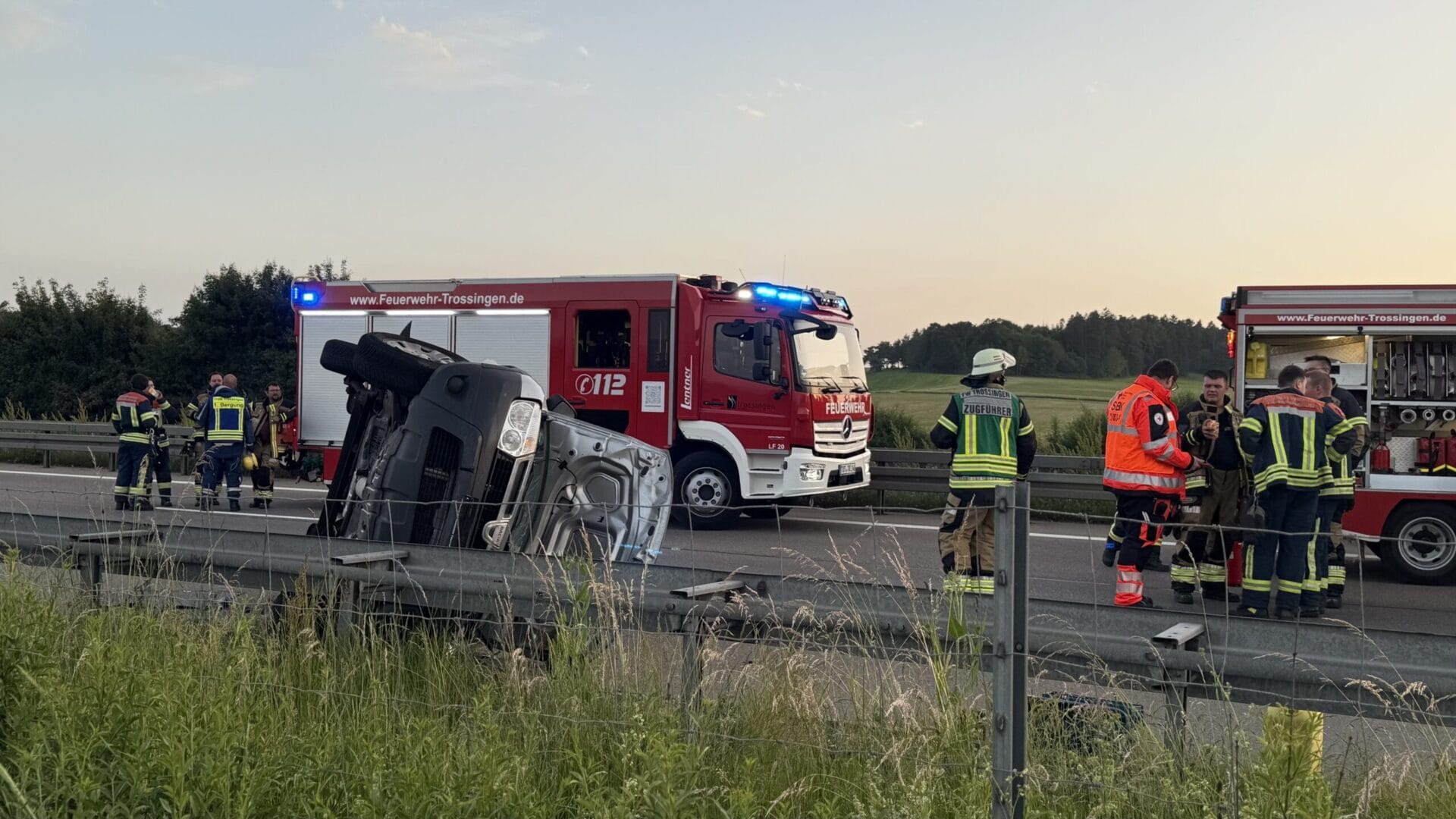 Die Autobahn war während der Unfallaufnahme bis etwa 21.30 Uhr voll gesperrt. Neben dem Rettungsdienst, der mit fünf Fahrzeugen und einen Hubschrauber im Einsatz war, unterstützte die Feuerwehr Trossingen mit rund 17 Kräften.