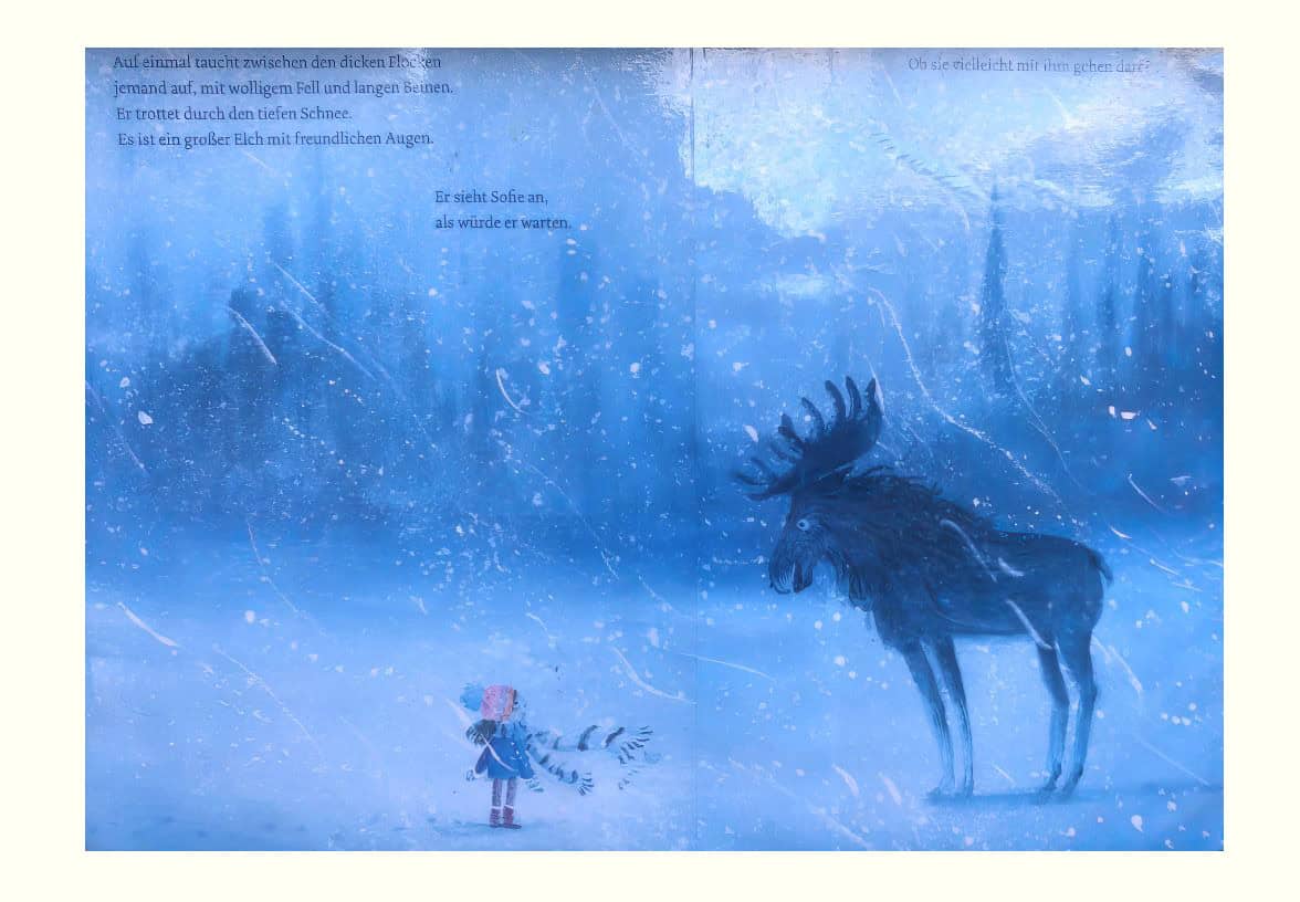 Fast ist Weihnachten. Überall in der Stadt sind die Menschen in Weihnachtsstimmung, nur bei Sophie zu Hause nicht. Ihr Vater ist viel zu beschäftigt, mit Dingen die Sofie nicht versteht. Doch da taucht mitten im Schneesturm vor Sofie ein Elch auf. Dieser Elch nimmt sie mit in den Wald. Als Sofie dort einen einsamen Tannenbaum entdeckt, kommt ihr eine fabelhafte Idee …