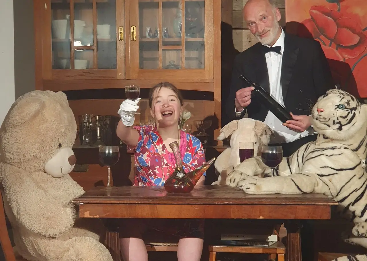 Allerdings ist das lustige Stück dieses Jahr runderneuert und auch für die nachwachsenden Generationen geeignet. Es wird Miss Sophies 9. Geburtstag gefeiert, ihre Gäste sind aus Plüsch und können natürlich nicht selber trinken. Das hat Butler James zu übernehmen. Es spielen Martha (auch Idee) und Peter Burri.