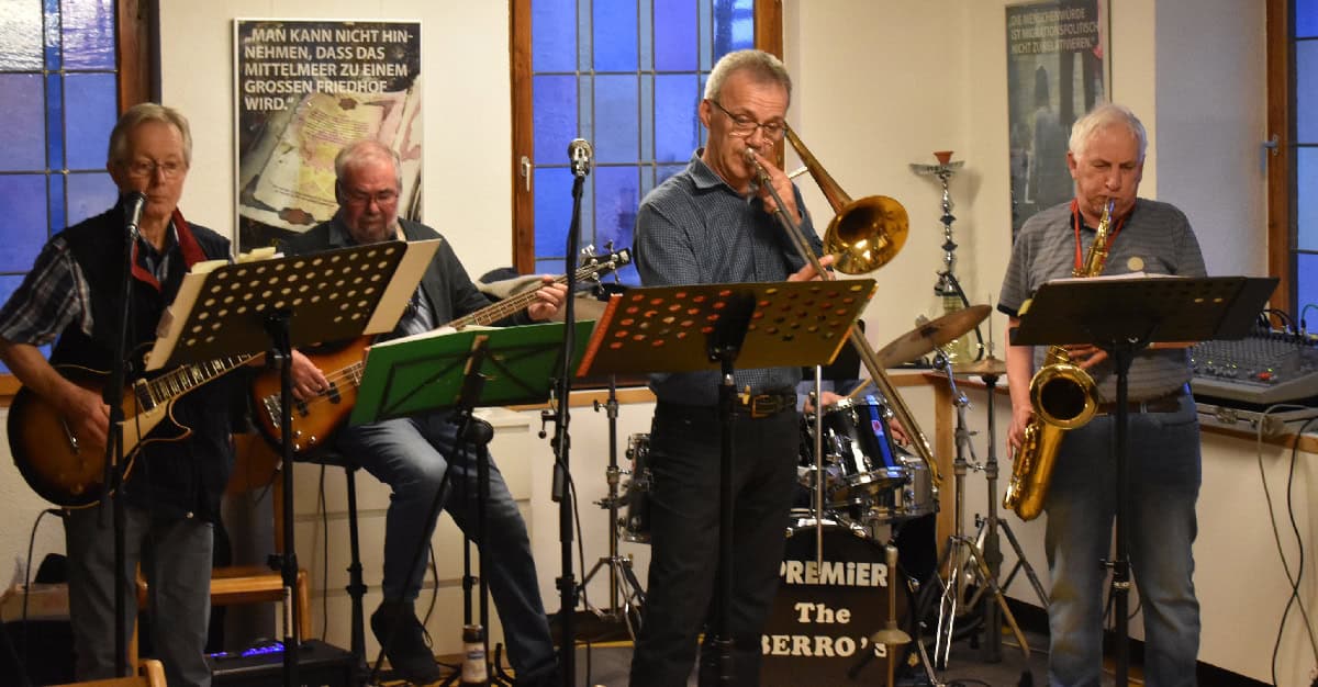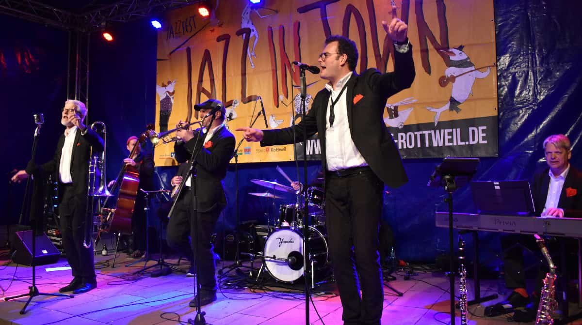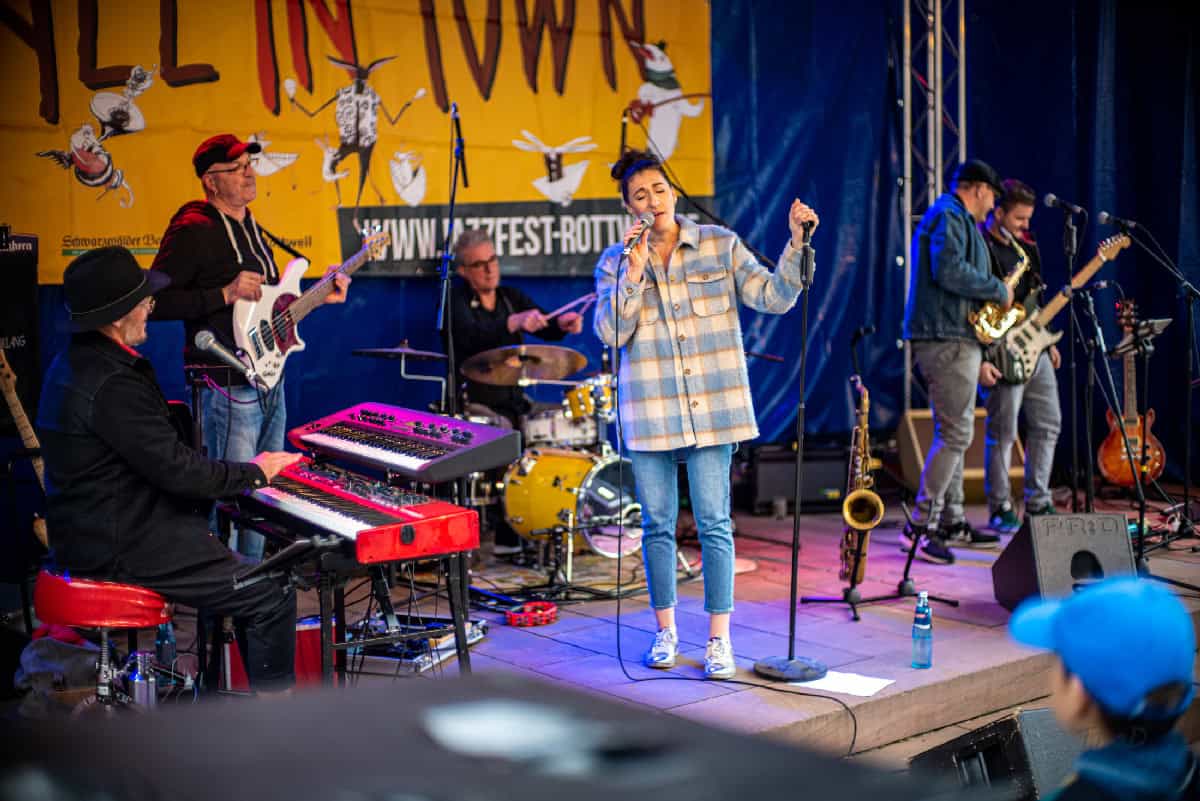 „Jazz in Town“ ist zurück! Eine große Menge Menschen füllte die 26 Lokalitäten in der Rottweiler Innenstadt, vom Goldenen Apfel bis zum Hasen und vom Dominikanermuseum bis zur Villa. Vielfalt war Trumpf, vom akustischen Duo bis zum knalligen Rock, von Folk bis Jazz. Und zum Abschluss dann die Party mit der „Soulmachine“ im Kapuziner. Schön war’s!