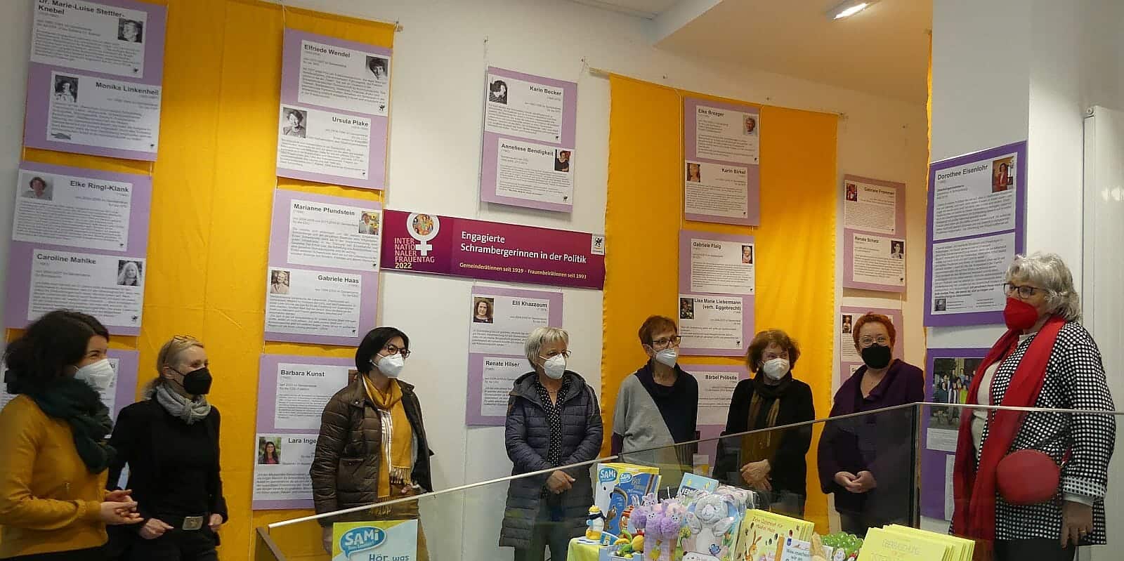 Zur Ausstellungseröffnung am internationalen Frauentag waren – coronabedingt – nur einige Frauen gekommen: Ehemalige Stadträtinnen und Mitglieder des Frauenbeirats.