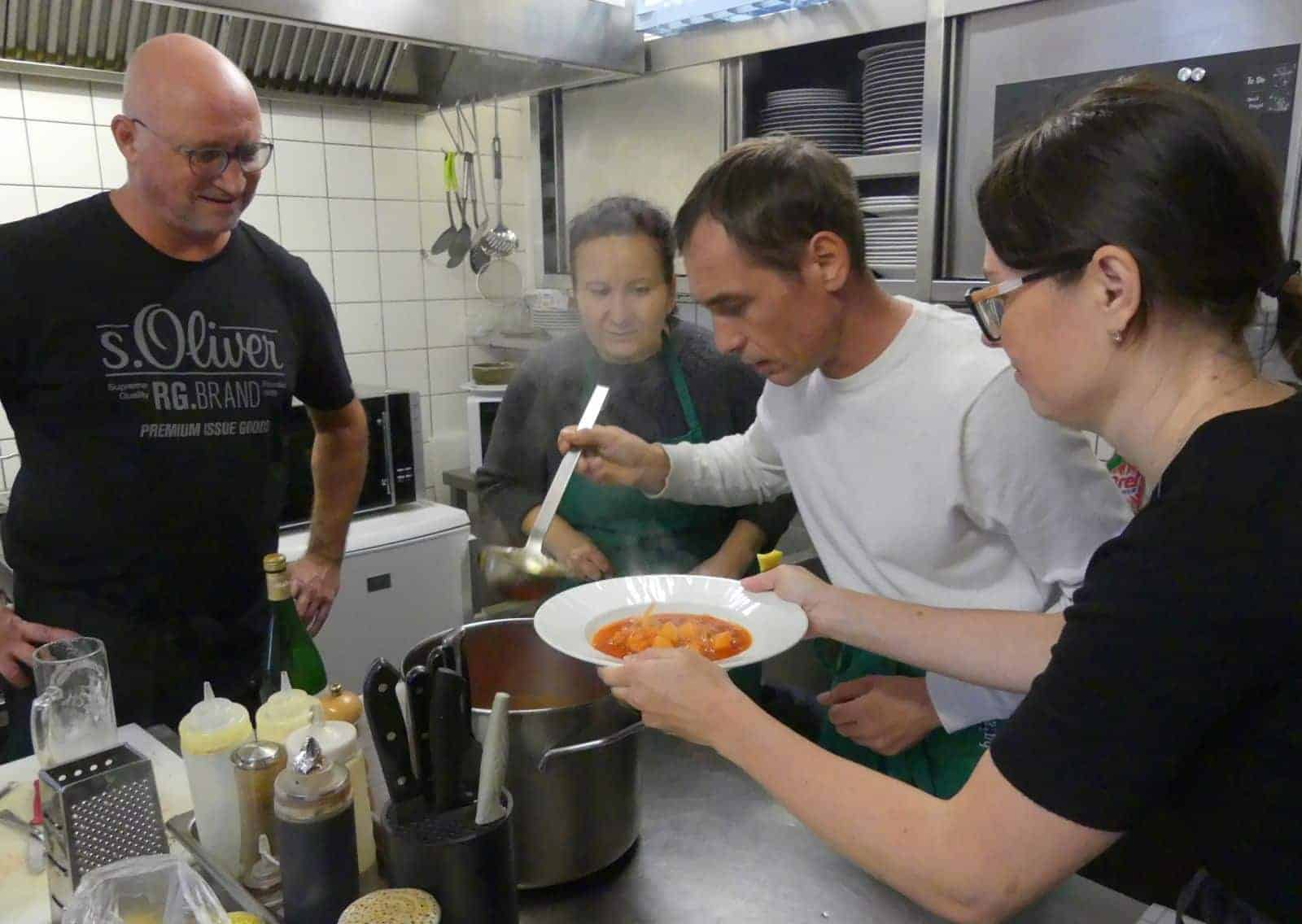 Vor allem aber erzählen die Speisen Geschichten. Geschichten von Neubeginn und Freude, von Akzeptanz und Offenheit. Die neu angekommenen Hauskäufer mit der Schwester des Vorbesitzers, der alte mit dem neuen Bürgermeister, die vielen „Neuen“ aus der Ukraine kochten zusammen und lernten sich dabei kennen.