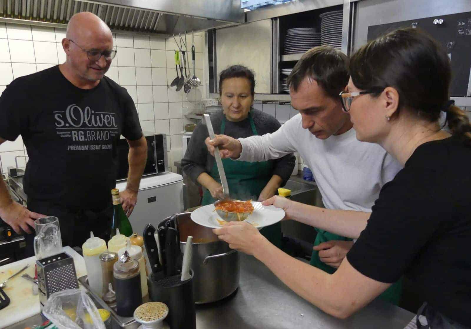 Vor allem aber erzählen die Speisen Geschichten. Geschichten von Neubeginn und Freude, von Akzeptanz und Offenheit. Die neu angekommenen Hauskäufer mit der Schwester des Vorbesitzers, der alte mit dem neuen Bürgermeister, die vielen „Neuen“ aus der Ukraine kochten zusammen und lernten sich dabei kennen.