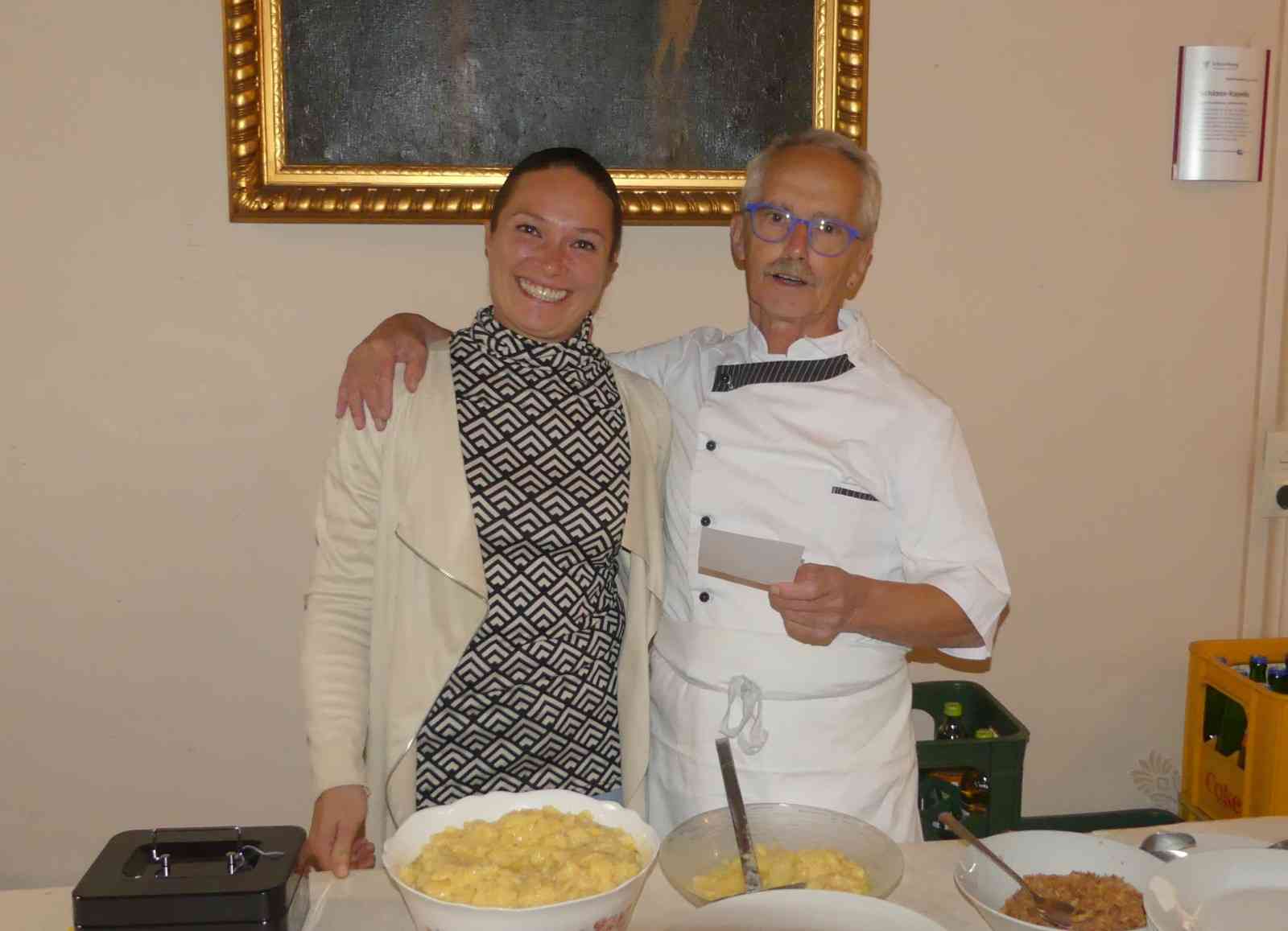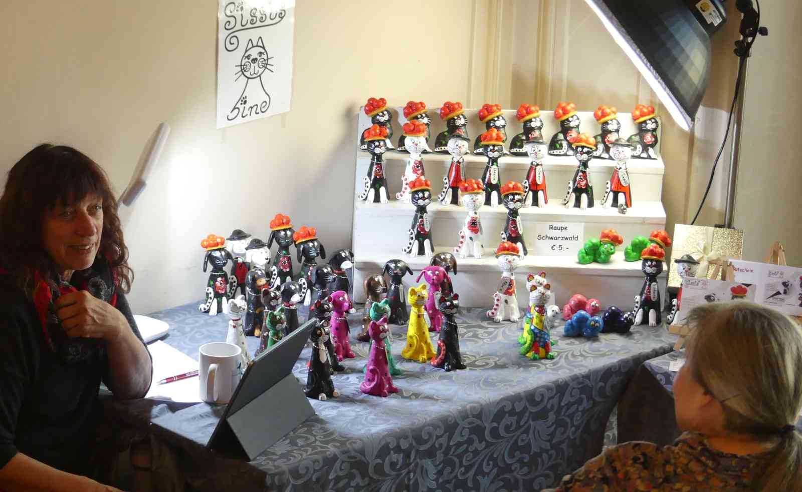Siggi Brändle bot Maultaschen mit Kartoffelsalat, Kaffee und Kuchen gab es im Museumscafé. An einem Stand verkaufte das Stadtmuseum Majolika-Geschirrteile, die mehrfach im Magazin vorhanden sind. An einzelnen Tischen verkauften Kunsthandwerkerinnen ihre Produkte.