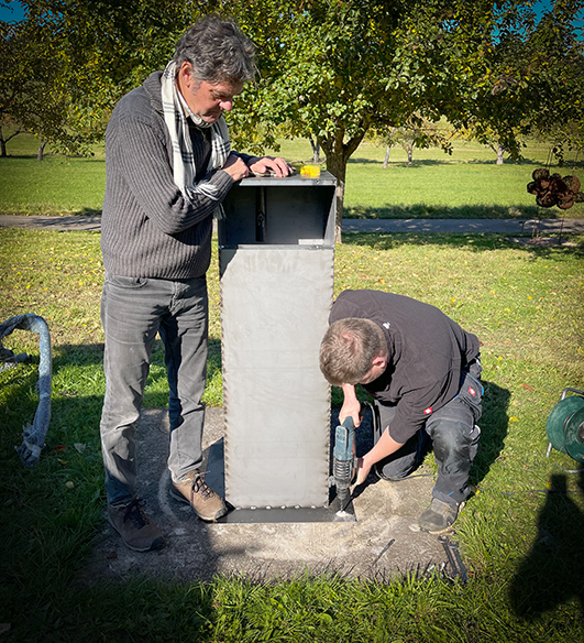 Noch einmal richtig den Turbo eingelegt hat das Team des Hausener KUNSTDüngers: Obwohl im Herbst eigentlich die Natur auf Ruhe umschaltet, ist auf der Skulpturen-Wiese am Ortsrand dieser Tage ein weiteres Objekt emporgesprossen.