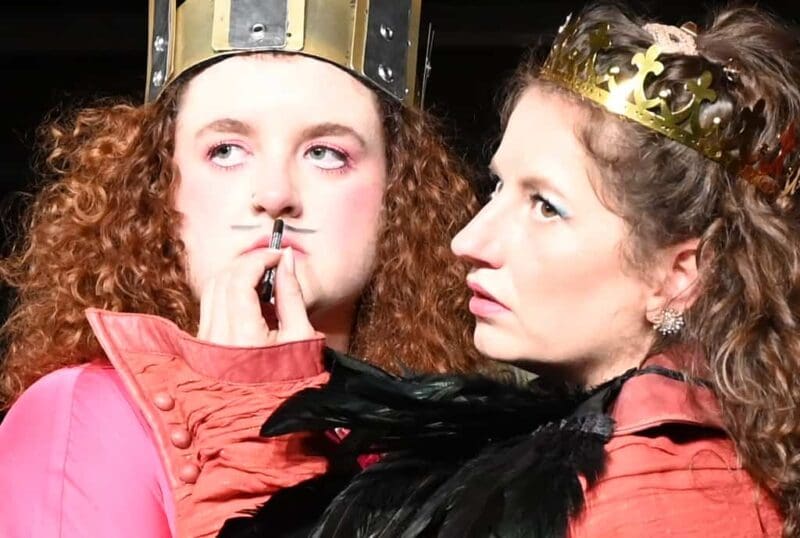 Zum Glück wird diese Großanalyse, bei der gefühlt fast die gesamte Gegenwart auf der Therapeuten-Couch liegt, mit viel spielerischem Schwung und jeder Menge Inszenierungs-Ideen in Theater transformiert. Zwei Ebenen stehen nebeneinander: Einerseits wird für eine Theater-Adaption des Kino-Krachers „Barbie“ gecastet – und dabei mit verhandelt, wie gefällig Theater sein soll und wie gerade Frauen in Rollen und Erwartungen verstrickt sind. Andererseits taucht man ein in Shakespeares „Hamlet“. Diese Ebenen stehen nebeneinander, werden aber auch verschränkt.