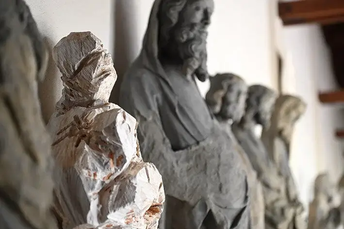 Es ist bereits die vierte „Gesprächs-Konstellation“, die zwischen den bedeutenden Repräsentanten der „Rottweiler Gotik“, den ehrwürdigen Propheten- und Apostel-Figuren aus den 1330er-Jahren, und Gegenwartskunst hergestellt wird: Im Jahrestakt waren Larven Willi Buchers, Glaskunst aus der Derix-Werkstatt und Kreuzwege von Rottweiler Künstlern im Wehrgang bei der Lorenzkapelle zu Gast.