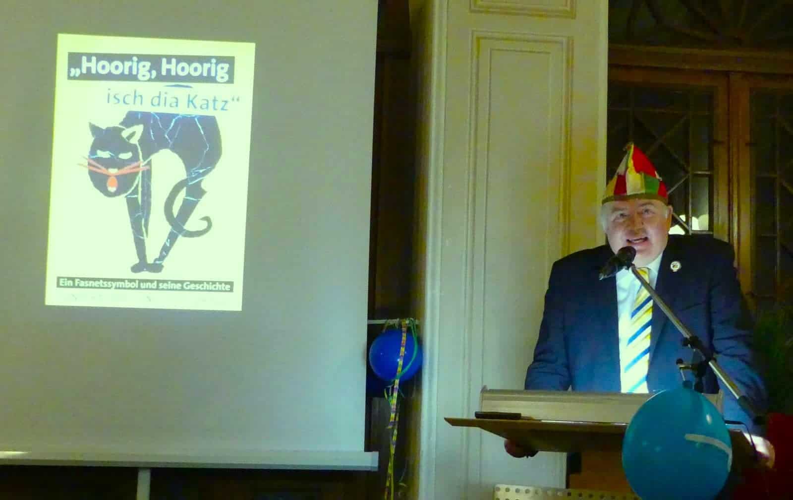 Dann ging er auf den Text des Narrenmarsches ein und wunderte sich über die Zeile: „Und wenn die Katz nit hoorig isch, gfällt se dene Maidle it.“