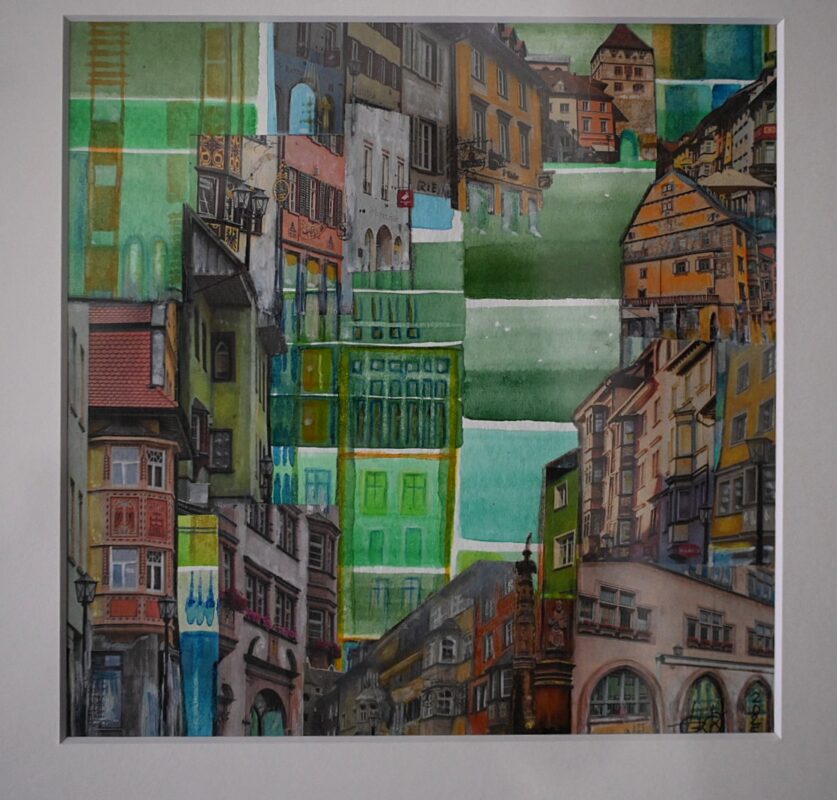 So treiben eine Reihe von Kunsttreff-Mitgliedern aktuelle Entwicklungen um. Birgit Krautheimer etwa, zeigt eine Serie mit Aquarellen zu den Nationalfarben Schwarz-Rot-Gold. Deren Dreiklang wird zusehends instabil – für Krautheimer ein Sinnbild für Dynamiken in der Demokratie.