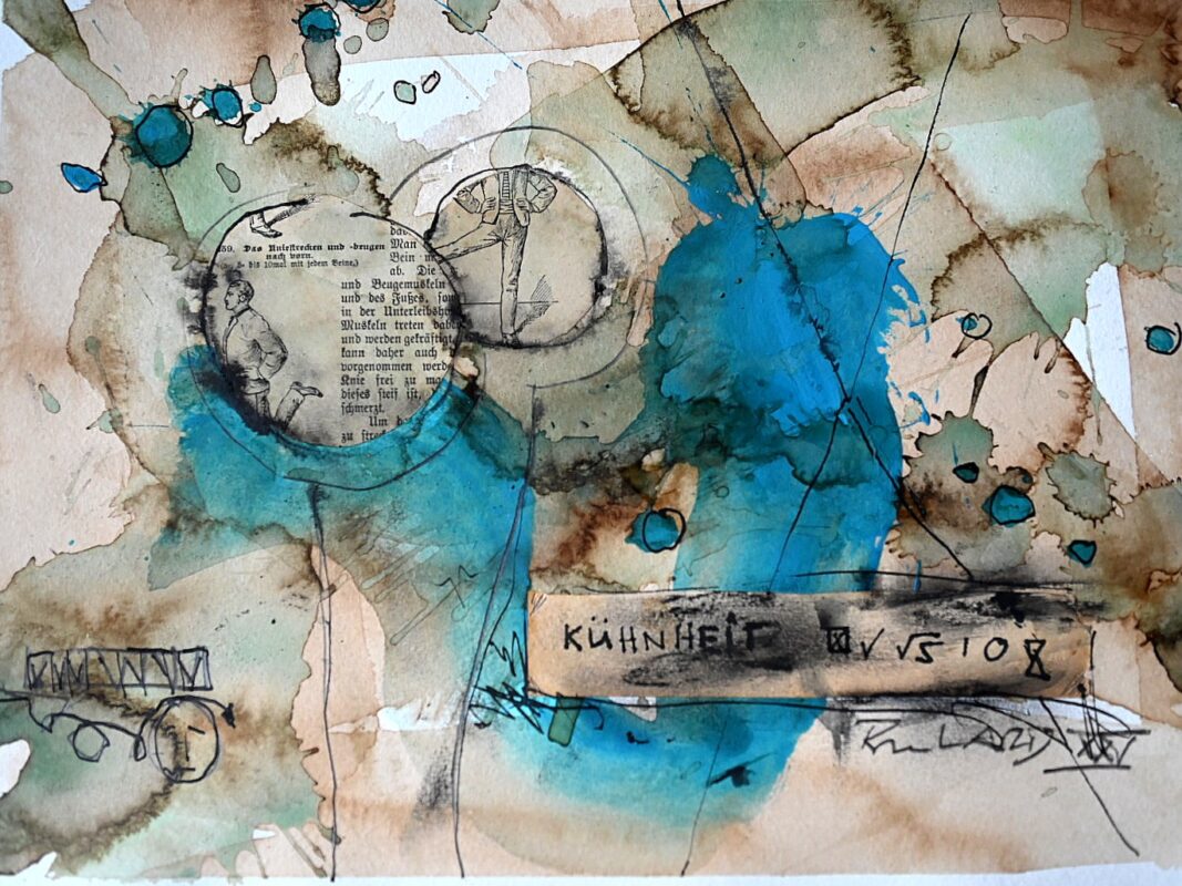 Auf ganz anderes Terrain hat sich jüngst Frank Burkard vorgewagt: Er hat sich von einem Text des französischen Dichters und Dramatikers Jean Genet (1910-1986) über einen Seiltänzer zu 30 Aquarellen anregen lassen. Der Balanceakt des Artisten lässt sich als Metapher für das Künstlerdasein verstehen –vielleicht gar für das Leben an sich. Burkhard hat der Text jedenfalls zu ungewohnt hellen, spielerischen Blättern inspiriert.