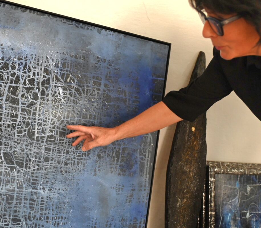 In die Tiefen von Erinnern und Vergessen taucht Sonja Anna Strohm ein. Sie hat dabei den Einzelnen und den Extremfall Demenz im Blick, wenn Vergessen zusehends Erinnern verdrängt. Auf einen ganzen Quadratmeter erstreckt sich da beispielsweise ein zerklüftetes „Gedankenmeer“ – und tiefe Einkerbungen kann man als harte Spuren sowohl von Erinnerung als auch Verlust verstehen.