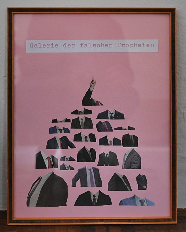 Ein Scharnier zwischen Gegenwartsdiagnose dem Themenfeld Erinnern bilden Arbeiten von Silke Leffler. Sie hat etwa ein altes Schwarzweis-Foto aus Familienbesitz mit ihren quirligen Elfenwesen teils übermalt: Erinnerung und auch die Last von Geschichte gehen nicht verloren – sie werden aber mit Neuem verbunden und spürbar lebenszugewandt auf eine Zukunft hin geöffnet.