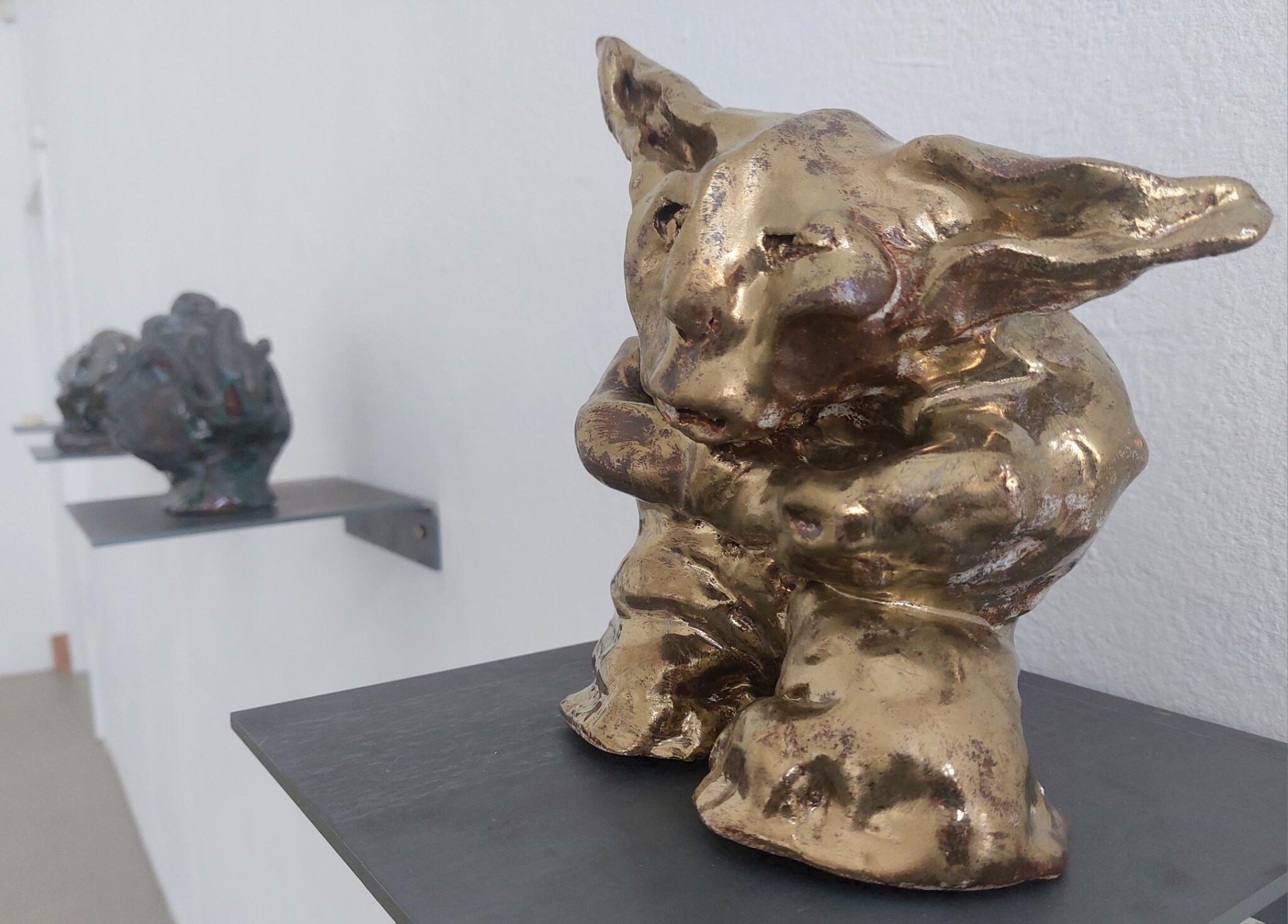 Worauf er mit den Keramik-Kreaturen anspielt, das lässt Gerrit Friese, der lange eine Galerie für Gegenwartskunst in Stuttgart betrieb, ehe er diese 2015 nach Berlin verlegte, offen. Er nennt die Geschöpfe nur vieldeutig „Wesen“. Man kann also fröhlich vor sich hin spekulieren – und sich über Entdeckungen wie einen kleinen Meister Yoda freuen.