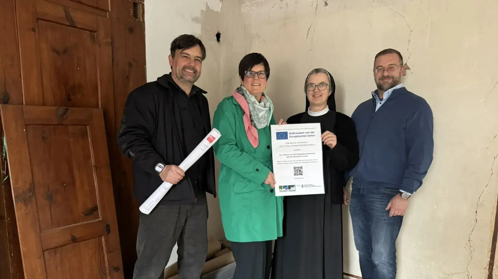 Ein bedeutender Meilenstein wurde am 26. März mit der offiziellen Übergabe der Hinweistafel durch Julia Kiefer, Vertreterin des LEADER-Programms, erreicht. Mit diesem symbolischen Akt fiel der Startschuss für die Umgestaltung der Räumlichkeiten im Anschluss an die Wallfahrtskirche. Projektträger ist das Kloster Heiligenbronn, das die Umsetzung der Ausstellung ermöglicht.