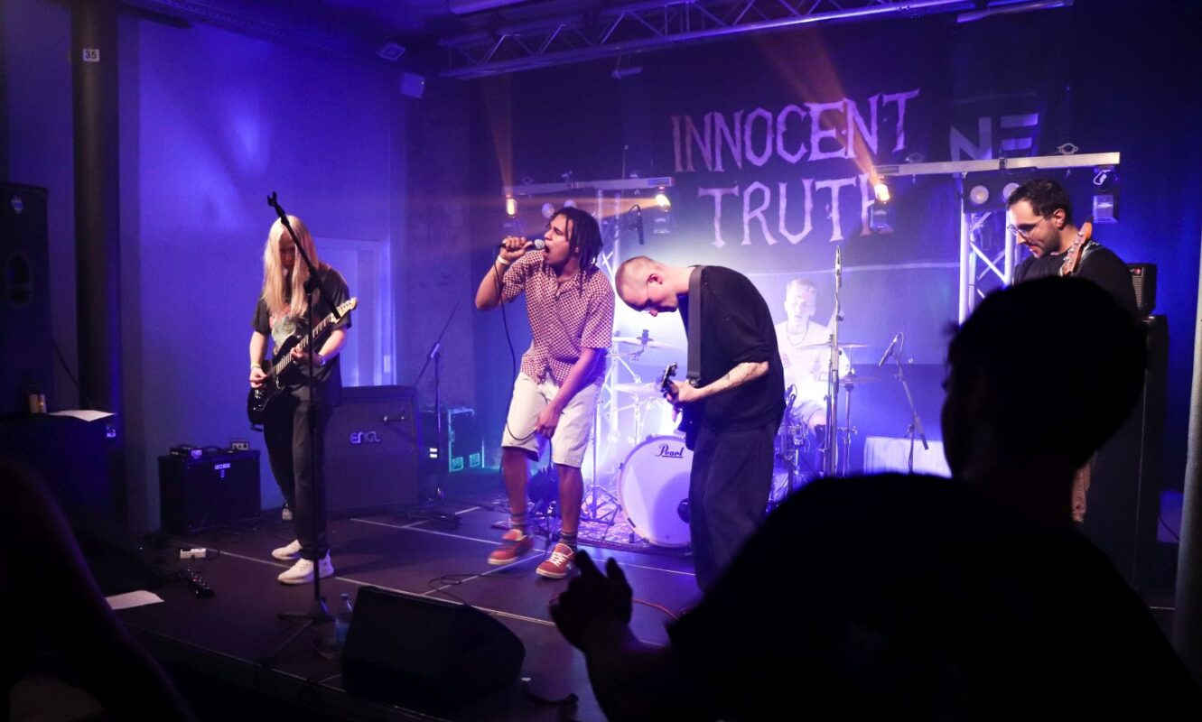 Danach folgte ein echtes Überraschungsmoment: Die junge Band Innocent Truth, erst 2024 gegründet, betrat die Bühne – und dominierte sie vom ersten Ton an. Mit einer Mischung aus Punk und Alternative Rock sowie eigenen Songs lieferten die Newcomer ein souveränes und kraftvolles Set. Ihr Auftritt war frisch, laut und emotional – und bewies, dass sich die lokale Musikszene um die nächste Generation keine Sorgen machen muss.